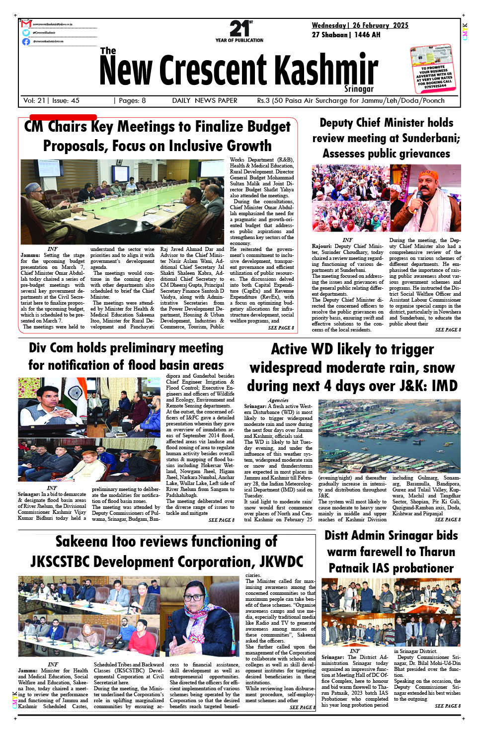 Crescent Kashmir 26-02-2025 February 26, 2025 << First << 1 >> Last >> Page 1Page 2Page 3Page 4Page 5Page 6Page 7Page 8 × Crescent Kashmir 26-02-2025 << First << 1 >> Last >> CK 1CK 2CK 3CK 4CK 5CK 6CK 7CK 8 CK 1