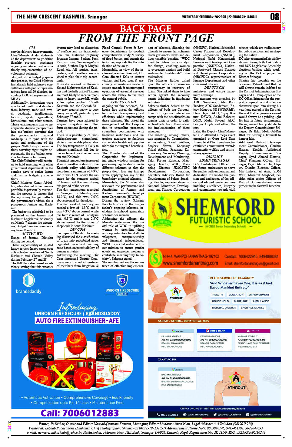 Crescent Kashmir 26-02-2025 Page: 8 February 26, 2025 << First << 8 >> Last >> Page 1Page 2Page 3Page 4Page 5Page 6Page 7Page 8 × Crescent Kashmir 26-02-2025 << First << 8 >> Last >> CK 1CK 2CK 3CK 4CK 5CK 6CK 7CK 8 CK 8
