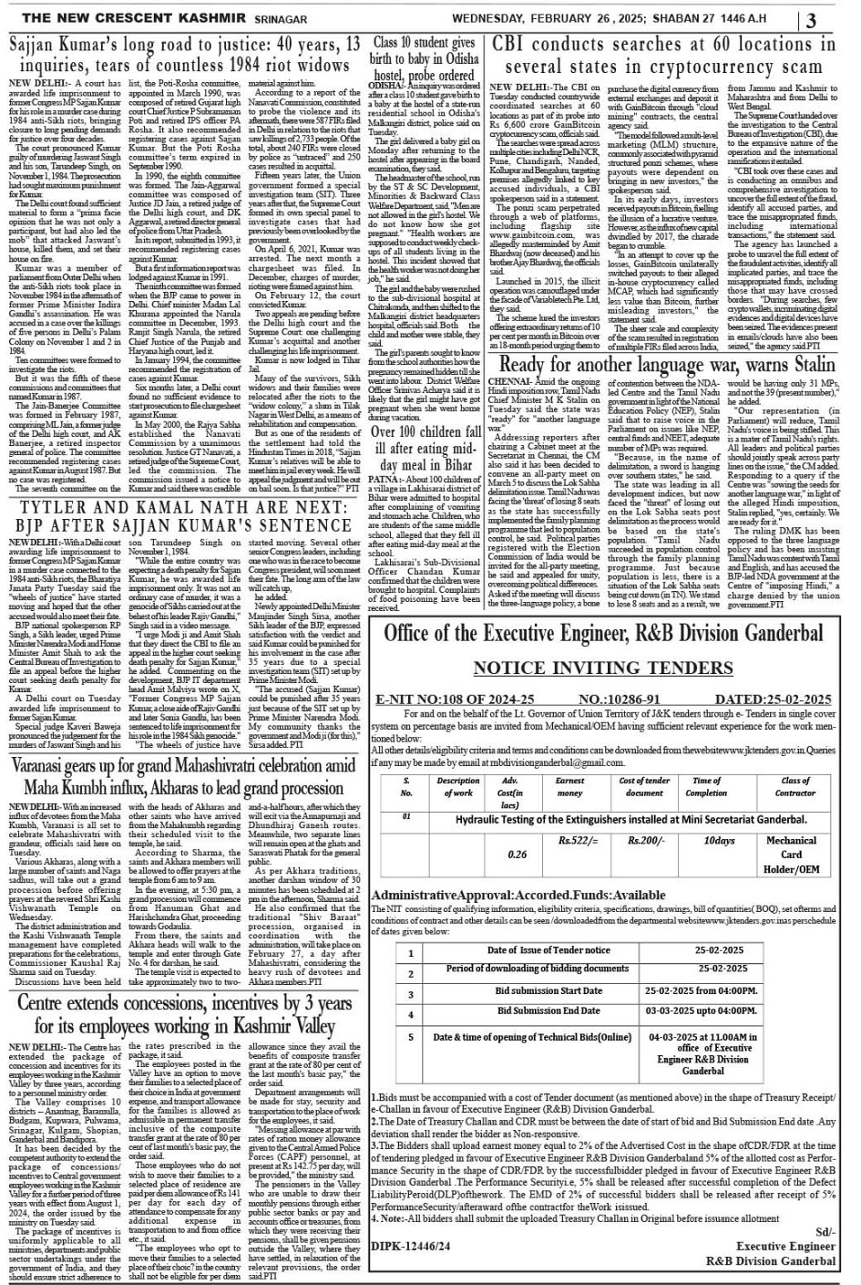 Crescent Kashmir 28-02-2025 Page: 3 February 28, 2025 << First << 3 >> Last >> Page 1Page 2Page 3Page 4Page 5Page 6Page 7Page 8 × Crescent Kashmir 28-02-2025 << First << 3 >> Last >> CK 1CK 2CK 3CK 4CK 5CK 6CK 7CK 8 CK 3