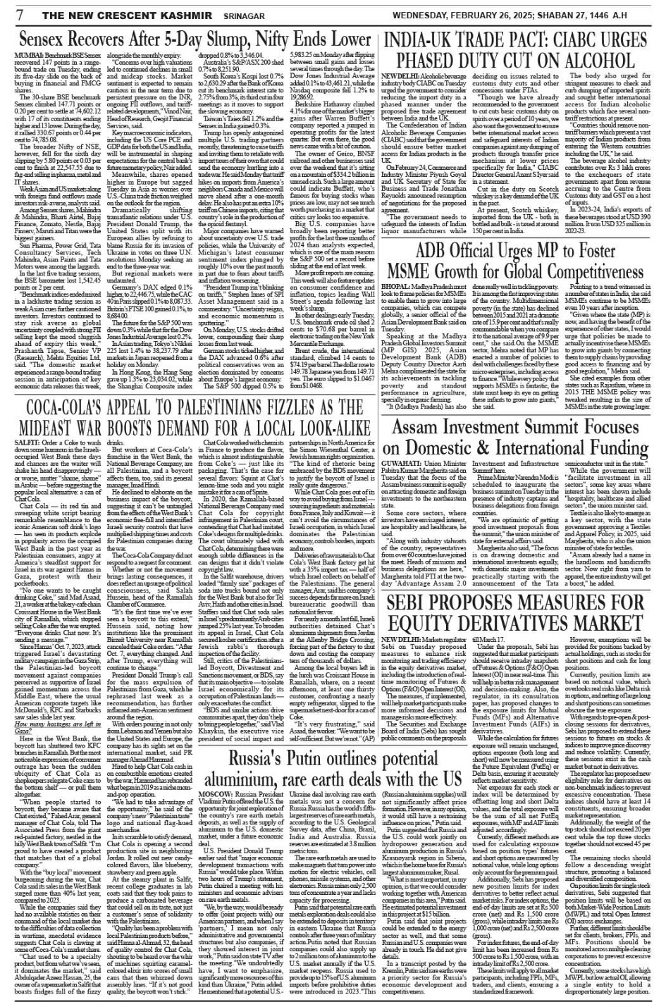 Crescent Kashmir 28-02-2025 Page: 7 February 28, 2025 << First << 7 >> Last >> Page 1Page 2Page 3Page 4Page 5Page 6Page 7Page 8 × Crescent Kashmir 28-02-2025 << First << 7 >> Last >> CK 1CK 2CK 3CK 4CK 5CK 6CK 7CK 8 CK 7