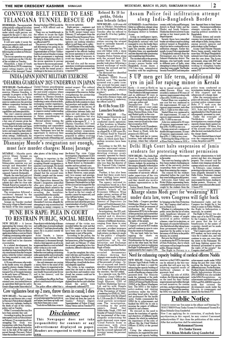Crescent Kashmir 05-03-2025 Page: 2 March 05, 2025 << First << 2 >> Last >> Page 1Page 2Page 3Page 4Page 5Page 6Page 7Page 8 × Crescent Kashmir 05-03-2025 << First << 2 >> Last >> CK 1CK 2CK 3CK 4CK 5CK 6CK 7CK 8 CK 2