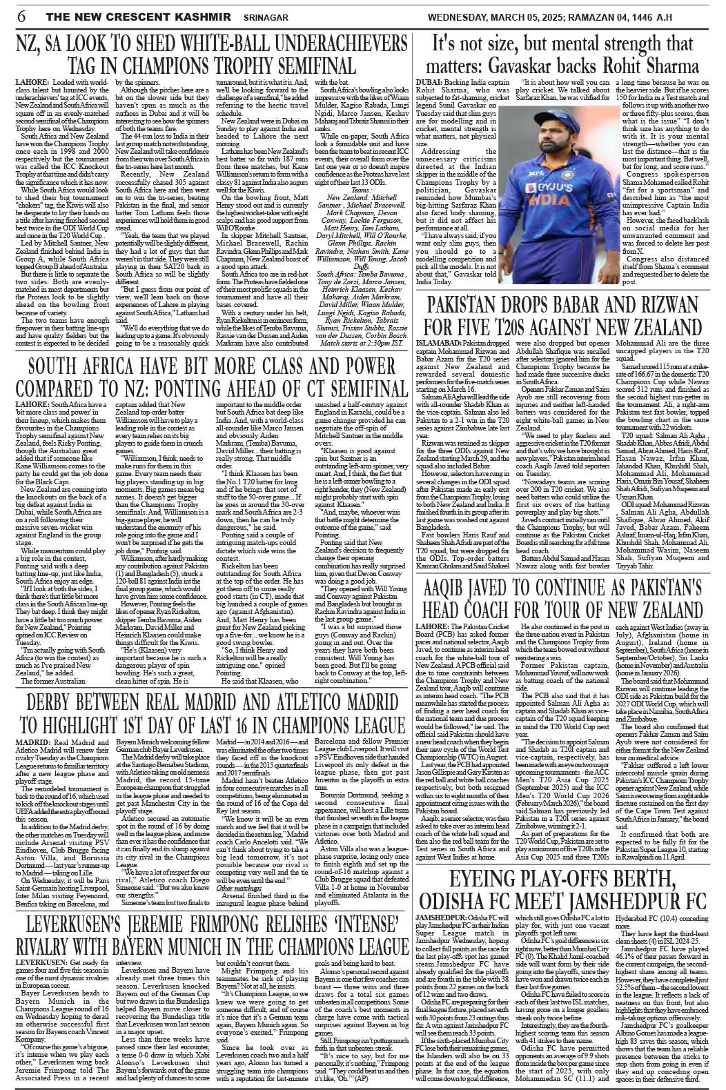 Crescent Kashmir 05-03-2025 Page: 6 March 05, 2025 << First << 6 >> Last >> Page 1Page 2Page 3Page 4Page 5Page 6Page 7Page 8 × Crescent Kashmir 05-03-2025 << First << 6 >> Last >> CK 1CK 2CK 3CK 4CK 5CK 6CK 7CK 8 CK 6