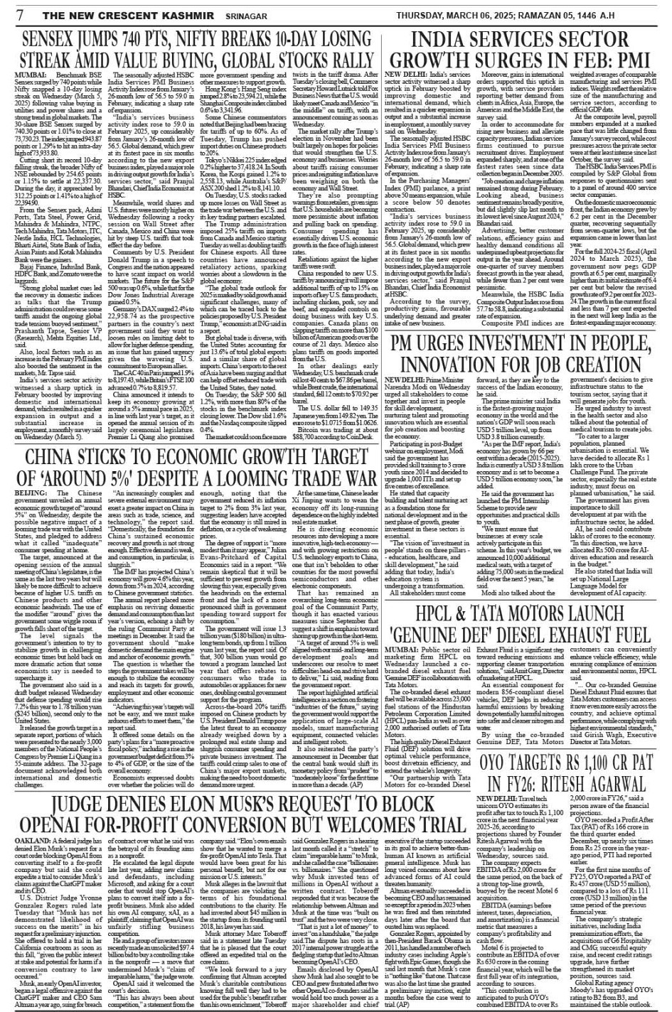 Crescent Kashmir 06-03-2025 Page: 7 March 06, 2025 << First << 7 >> Last >> Page 1Page 2Page 3Page 4Page 5Page 6Page 7Page 8 × Crescent Kashmir 06-03-2025 << First << 7 >> Last >> CK 1CK 2CK 3CK 4CK 5CK 6CK 7CK 8 CK 7