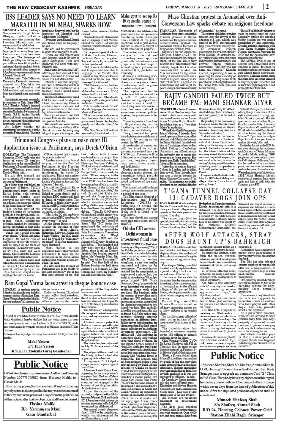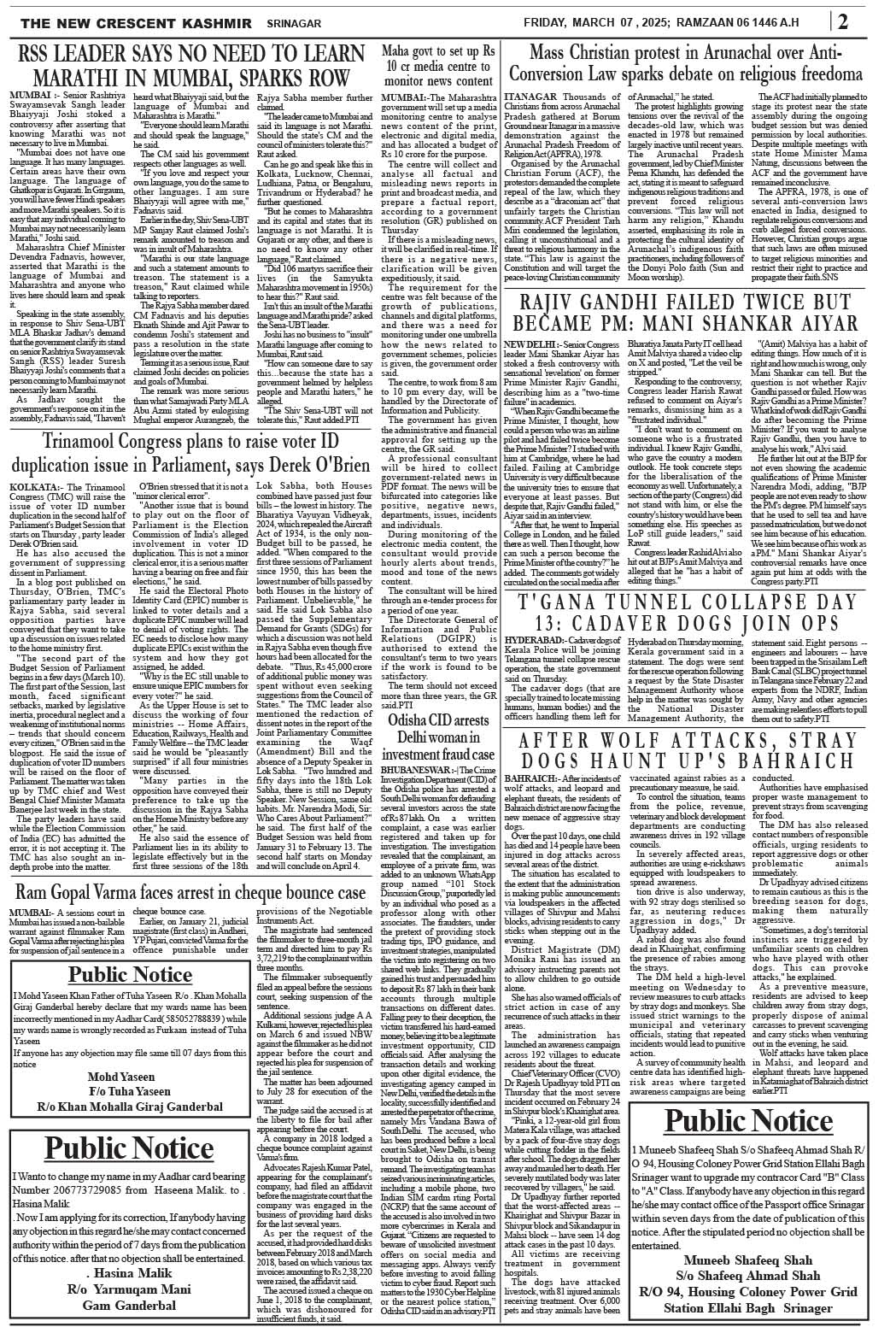 Crescent Kashmir 07-03-2025 Page: 2 March 07, 2025 << First << 2 >> Last >> Page 1Page 2Page 3Page 4Page 5Page 6Page 7Page 8 × Crescent Kashmir 07-03-2025 << First << 2 >> Last >> CK 1CK 2CK 3CK 4CK 5CK 6CK 7CK 8 CK 2