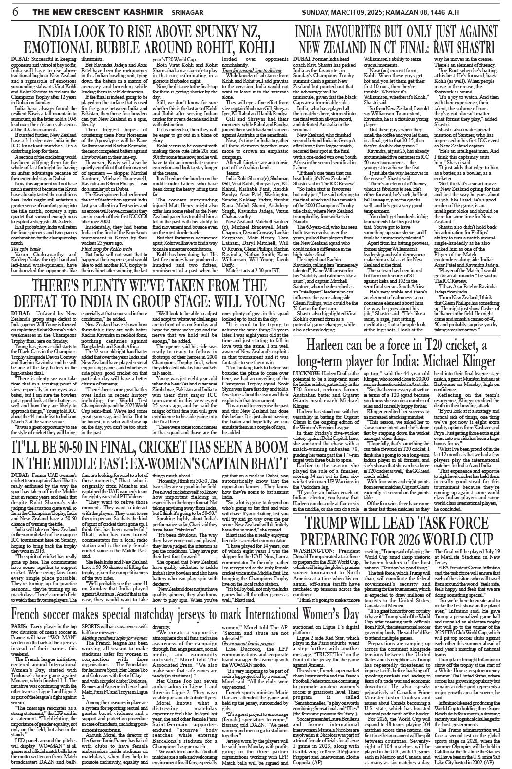 Crescent Kashmir 09-03-2025 Page: 6 March 09, 2025 << First << 6 >> Last >> Page 1Page 2Page 3Page 4Page 5Page 6Page 7Page 8 × Crescent Kashmir 09-03-2025 << First << 6 >> Last >> CK 1CK 2CK 3CK 4CK 5CK 6CK 7CK 8 CK 6