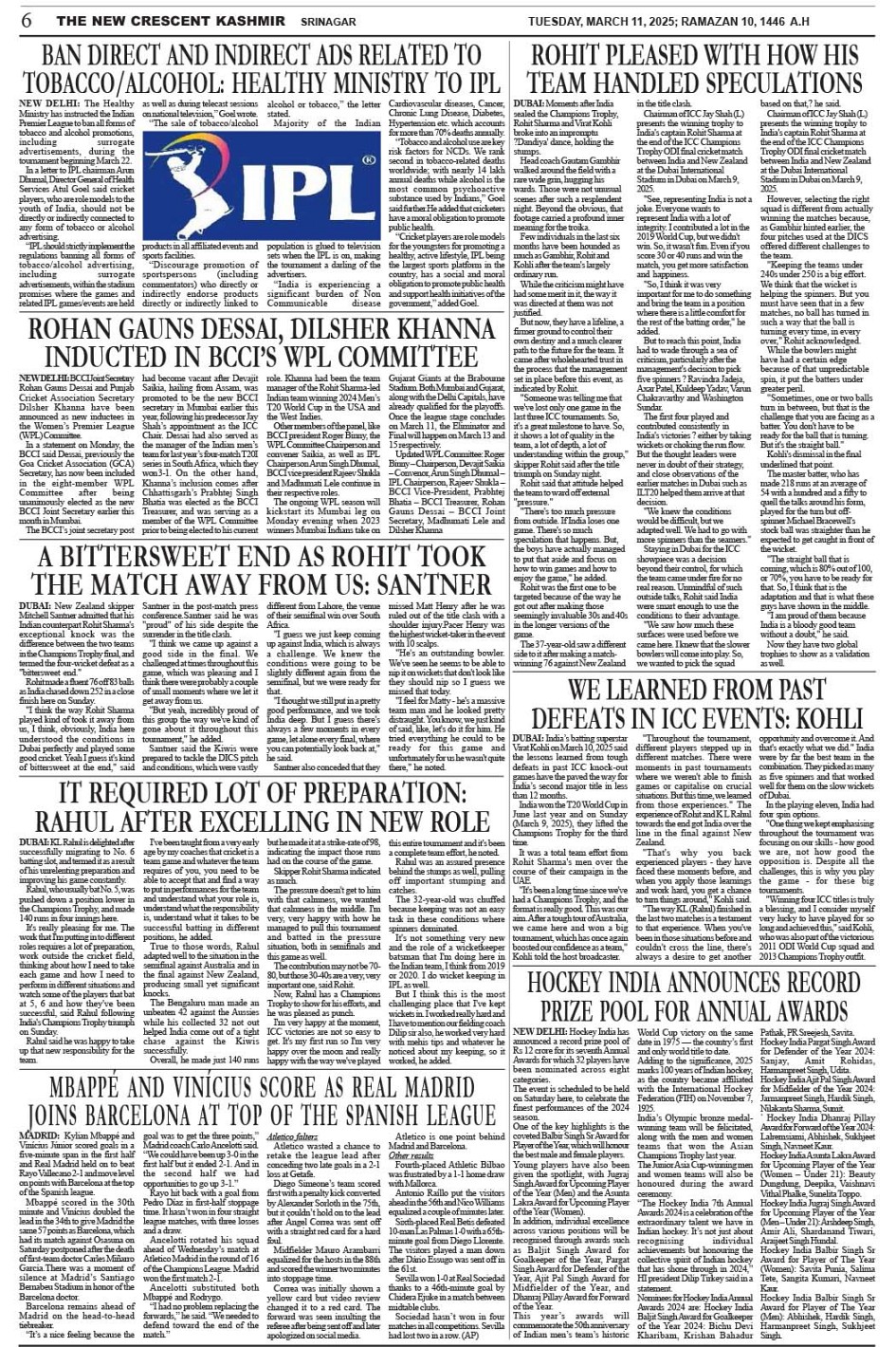 Crescent Kashmir 11-03-2025 Page: 6 March 11, 2025 << First << 6 >> Last >> Page 1Page 2Page 3Page 4Page 5Page 6Page 7Page 8 × Crescent Kashmir 11-03-2025 << First << 6 >> Last >> CK 1CK 2CK 3CK 4CK 5CK 6CK 7CK 8 CK 6