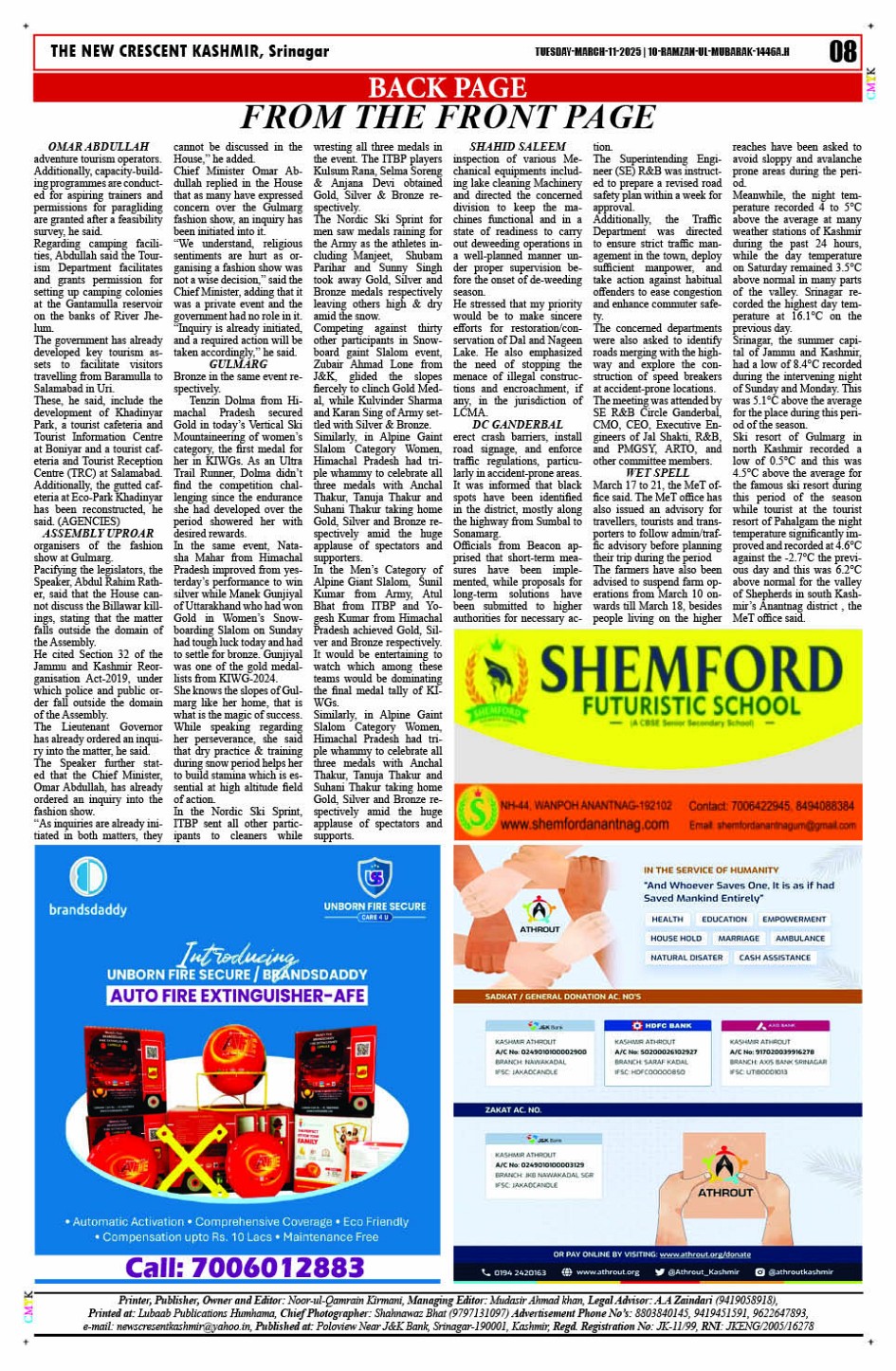 Crescent Kashmir 11-03-2025 Page: 8 March 11, 2025 << First << 8 >> Last >> Page 1Page 2Page 3Page 4Page 5Page 6Page 7Page 8 × Crescent Kashmir 11-03-2025 << First << 8 >> Last >> CK 1CK 2CK 3CK 4CK 5CK 6CK 7CK 8 CK 8