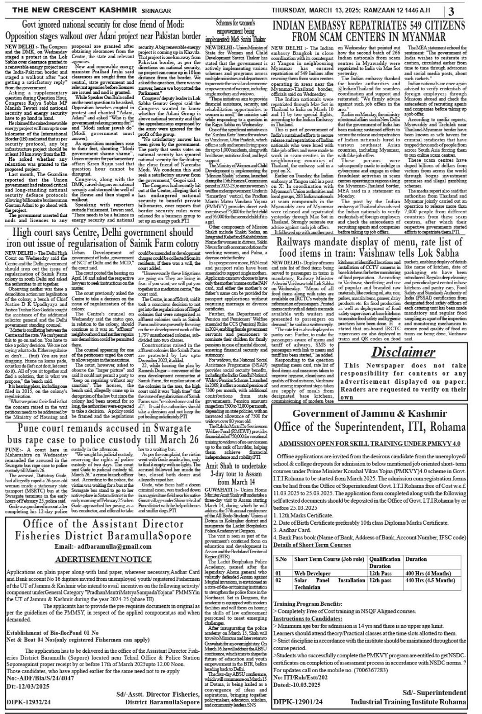 Crescent Kashmir 13-03-2025 Page: 3 March 13, 2025 << First << 3 >> Last >> Page 1Page 2Page 3Page 4Page 5Page 6Page 7Page 8 × Crescent Kashmir 13-03-2025 << First << 3 >> Last >> CK 1CK 2CK 3CK 4CK 5CK 6CK 7CK 8 CK 3