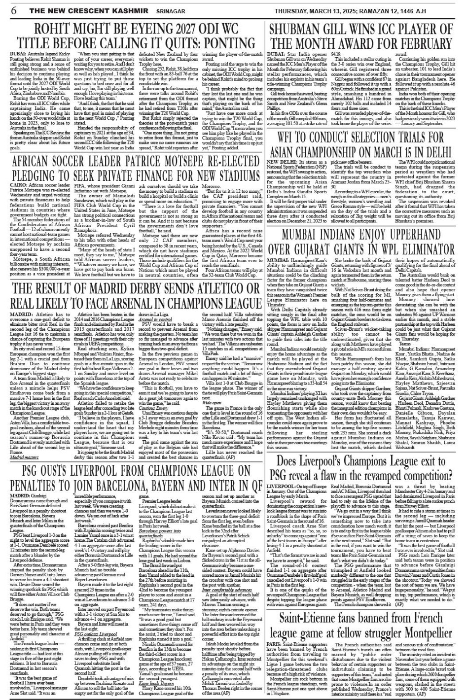 Crescent Kashmir 13-03-2025 Page: 6 March 13, 2025 << First << 6 >> Last >> Page 1Page 2Page 3Page 4Page 5Page 6Page 7Page 8 × Crescent Kashmir 13-03-2025 << First << 6 >> Last >> CK 1CK 2CK 3CK 4CK 5CK 6CK 7CK 8 CK 6