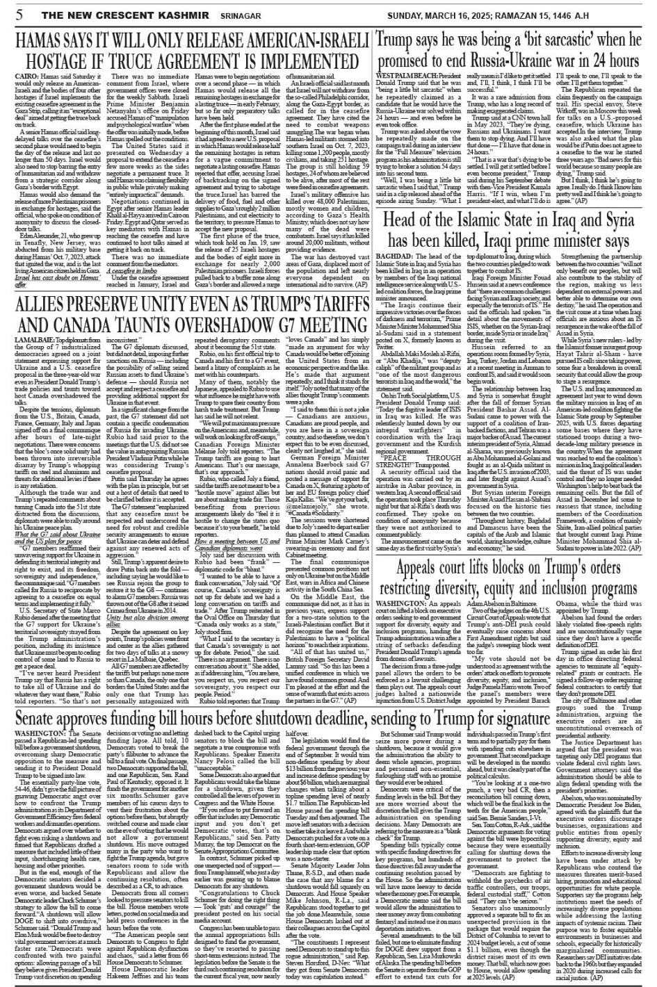 Crescent Kashmir 16-03-2025 Page: 5 March 16, 2025 << First << 5 >> Last >> Page 1Page 2Page 3Page 4Page 5Page 6Page 7Page 8 × Crescent Kashmir 16-03-2025 << First << 5 >> Last >> CK 1CK 2CK 3CK 4CK 5CK 6CK 7CK 8 CK 5