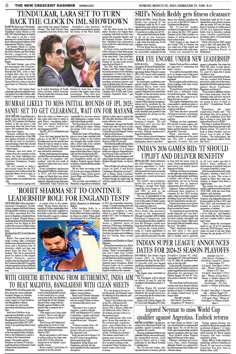 Crescent Kashmir 16-03-2025 Page: 6 March 16, 2025 << First << 6 >> Last >> Page 1Page 2Page 3Page 4Page 5Page 6Page 7Page 8 × Crescent Kashmir 16-03-2025 << First << 6 >> Last >> CK 1CK 2CK 3CK 4CK 5CK 6CK 7CK 8 CK 6