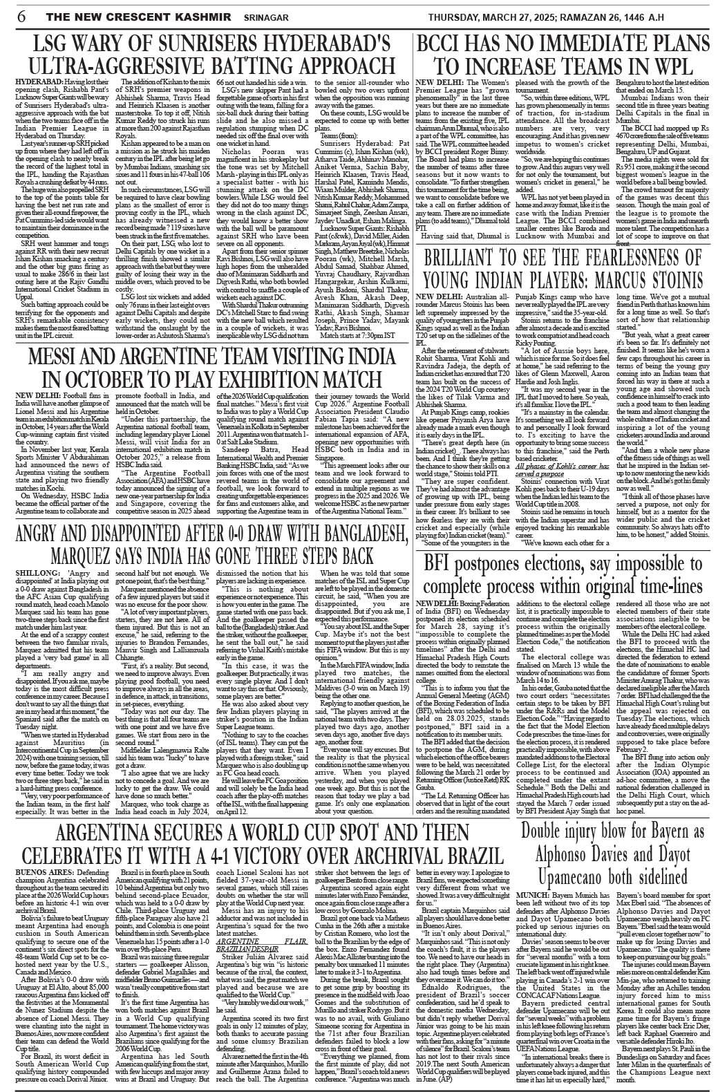 Crescent Kashmir 27-03-2025 Page: 6 March 27, 2025 << First << 6 >> Last >> Page 1Page 2Page 3Page 4Page 5Page 6Page 7Page 8 × Crescent Kashmir 27-03-2025 << First << 6 >> Last >> CK 1CK 2CK 3CK 4CK 5CK 6CK 7CK 8 CK 6