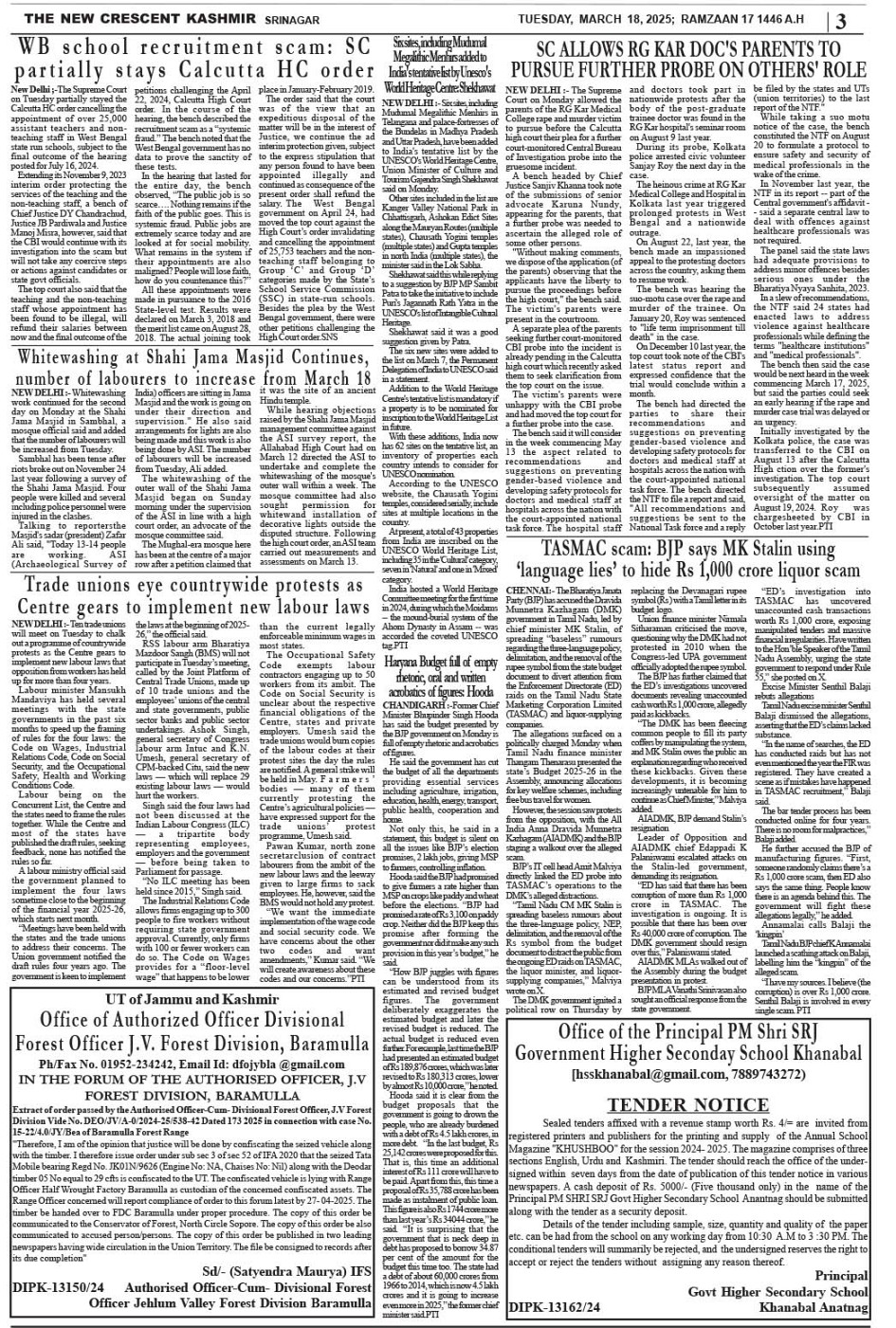 Crescent Kashmir 18-03-2025 Page: 3 March 18, 2025 << First << 3 >> Last >> Page 1Page 2Page 3Page 4Page 5Page 6Page 7Page 8 × Crescent Kashmir 18-03-2025 << First << 3 >> Last >> CK 1CK 2CK 3CK 4CK 5CK 6CK 7CK 8 CK 3