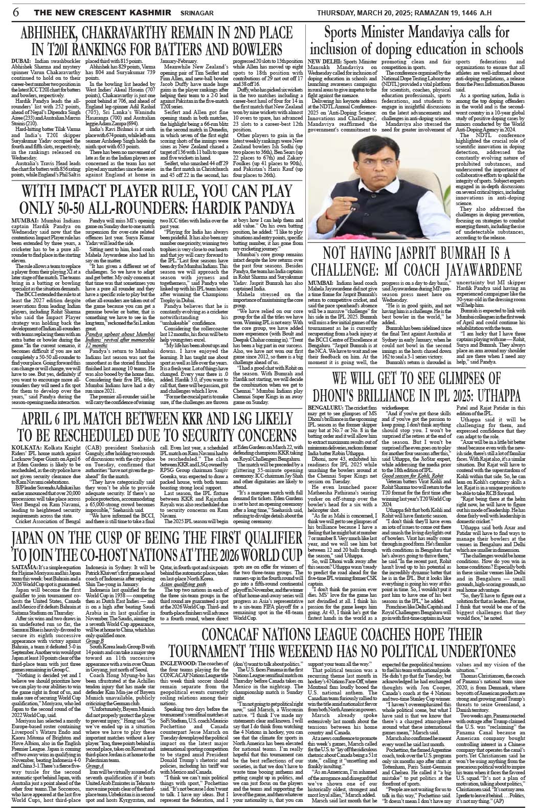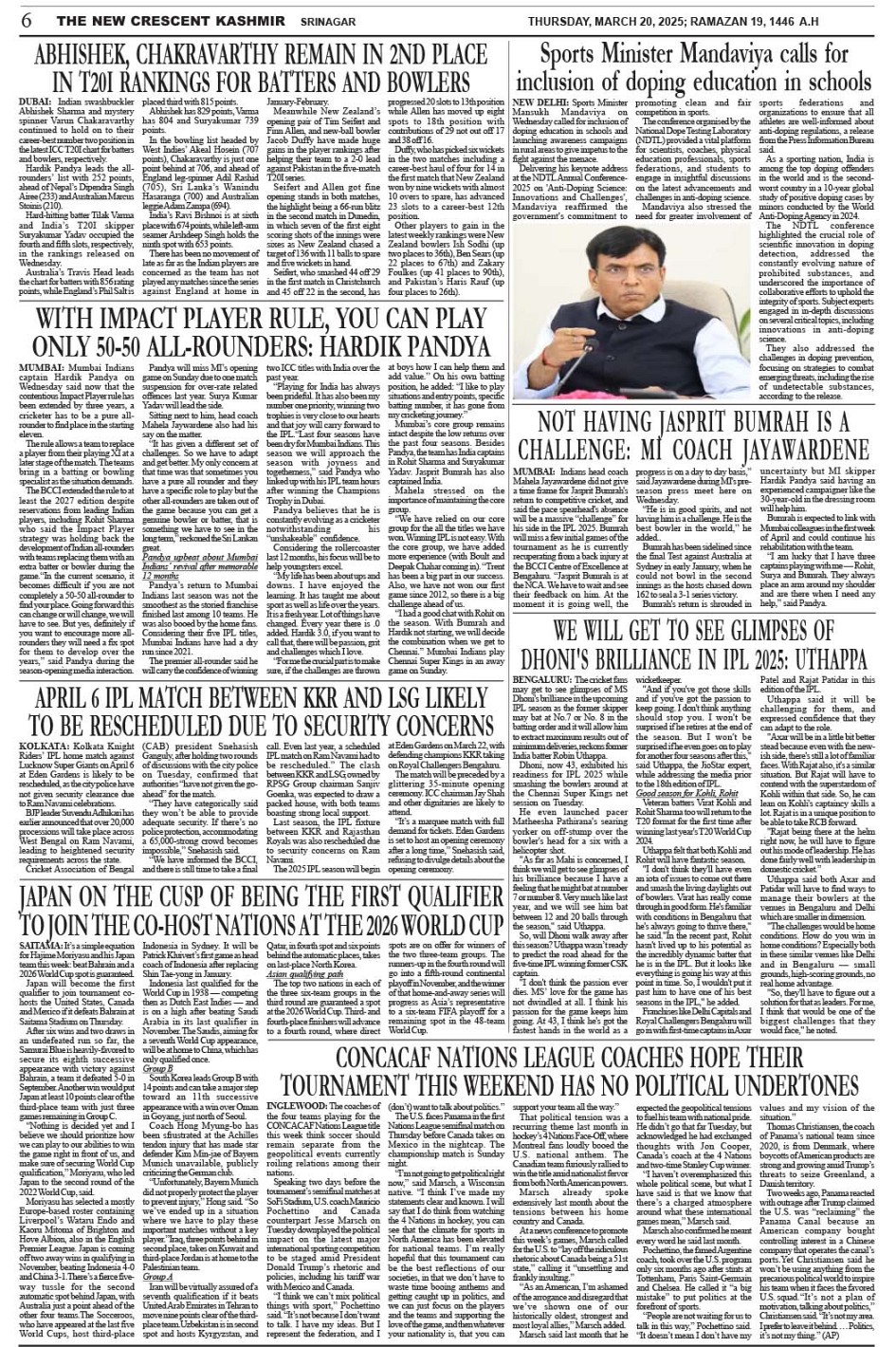 Crescent Kashmir 20-03-2025 Page: 6 March 20, 2025 << First << 6 >> Last >> Page 1Page 2Page 3Page 4Page 5Page 6Page 7Page 8 × Crescent Kashmir 20-03-2025 << First << 6 >> Last >> CK 1CK 2CK 3CK 4CK 5CK 6CK 7CK 8 CK 6