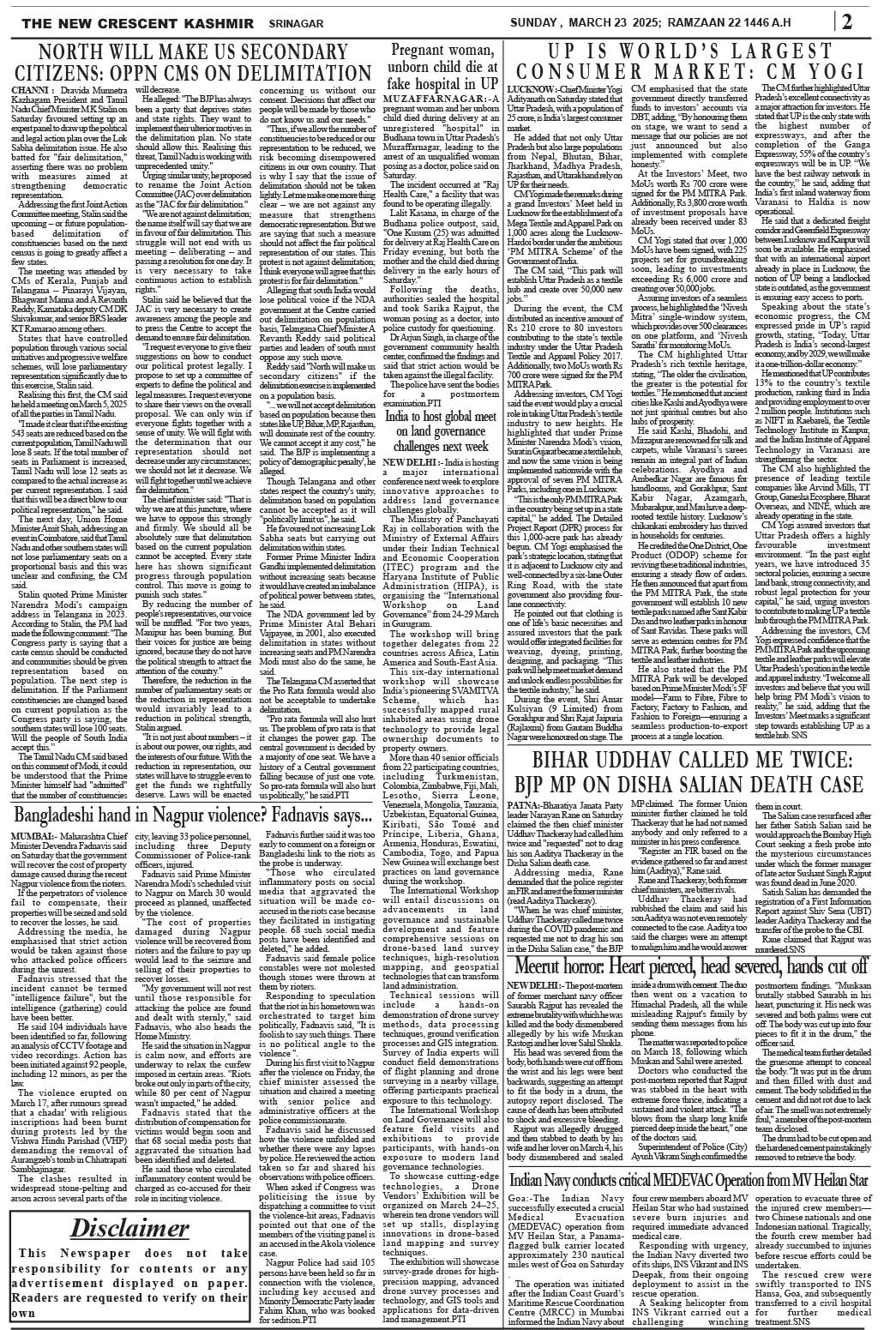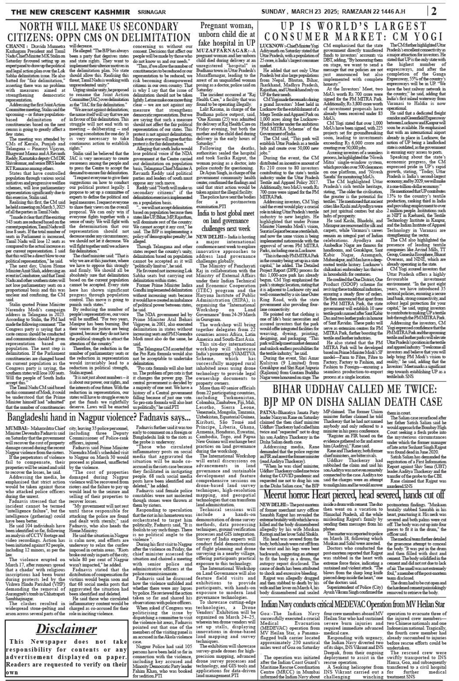 Crescent Kashmir 23-03-2025 Page: 2 March 23, 2025 << First << 2 >> Last >> Page 1Page 2Page 3Page 4Page 5Page 6Page 7Page 8 × Crescent Kashmir 23-03-2025 << First << 2 >> Last >> CK 1CK 2CK 3CK 4CK 5CK 6CK 7CK 8 CK 2