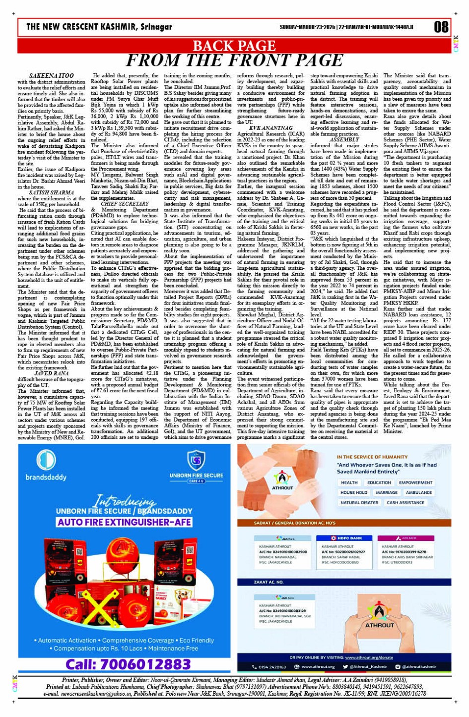 Crescent Kashmir 23-03-2025 Page: 8 March 23, 2025 << First << 8 >> Last >> Page 1Page 2Page 3Page 4Page 5Page 6Page 7Page 8 × Crescent Kashmir 23-03-2025 << First << 8 >> Last >> CK 1CK 2CK 3CK 4CK 5CK 6CK 7CK 8 CK 8
