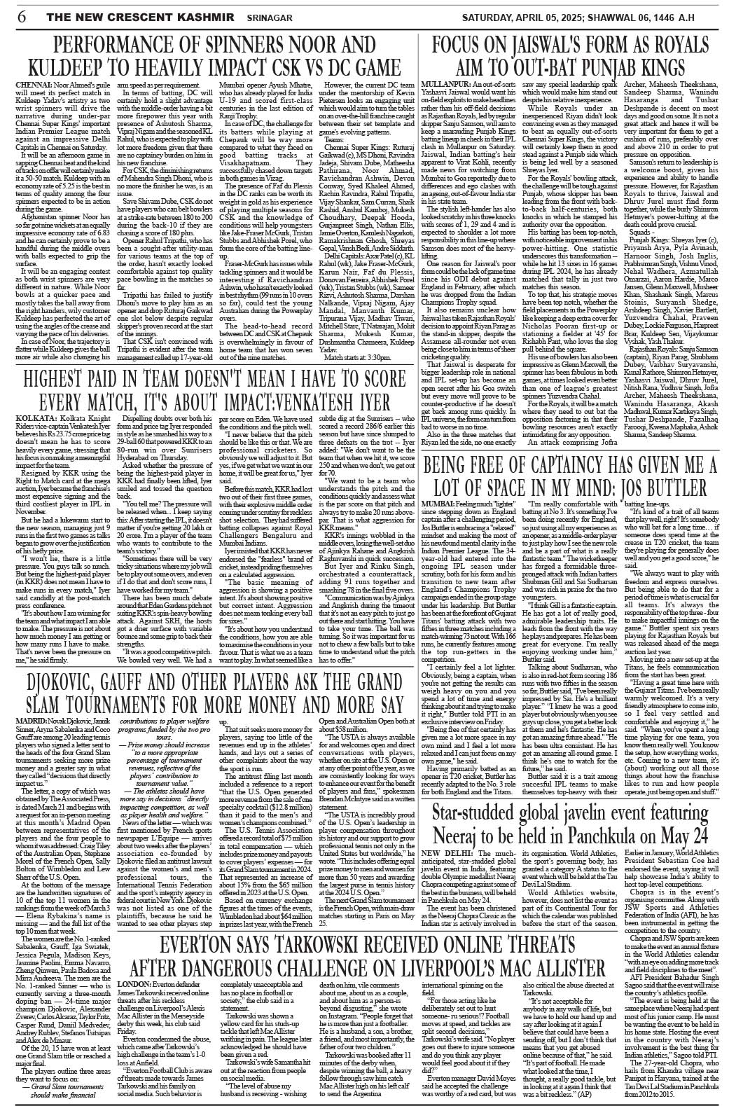 Crescent Kashmir 05-04-2025 Page: 6 April 05, 2025 << First << 6 >> Last >> Page 1Page 2Page 3Page 4Page 5Page 6Page 7Page 8 × Crescent Kashmir 05-04-2025 << First << 6 >> Last >> CK 1CK 2CK 3CK 4CK 5CK 6CK 7CK 8 CK 6