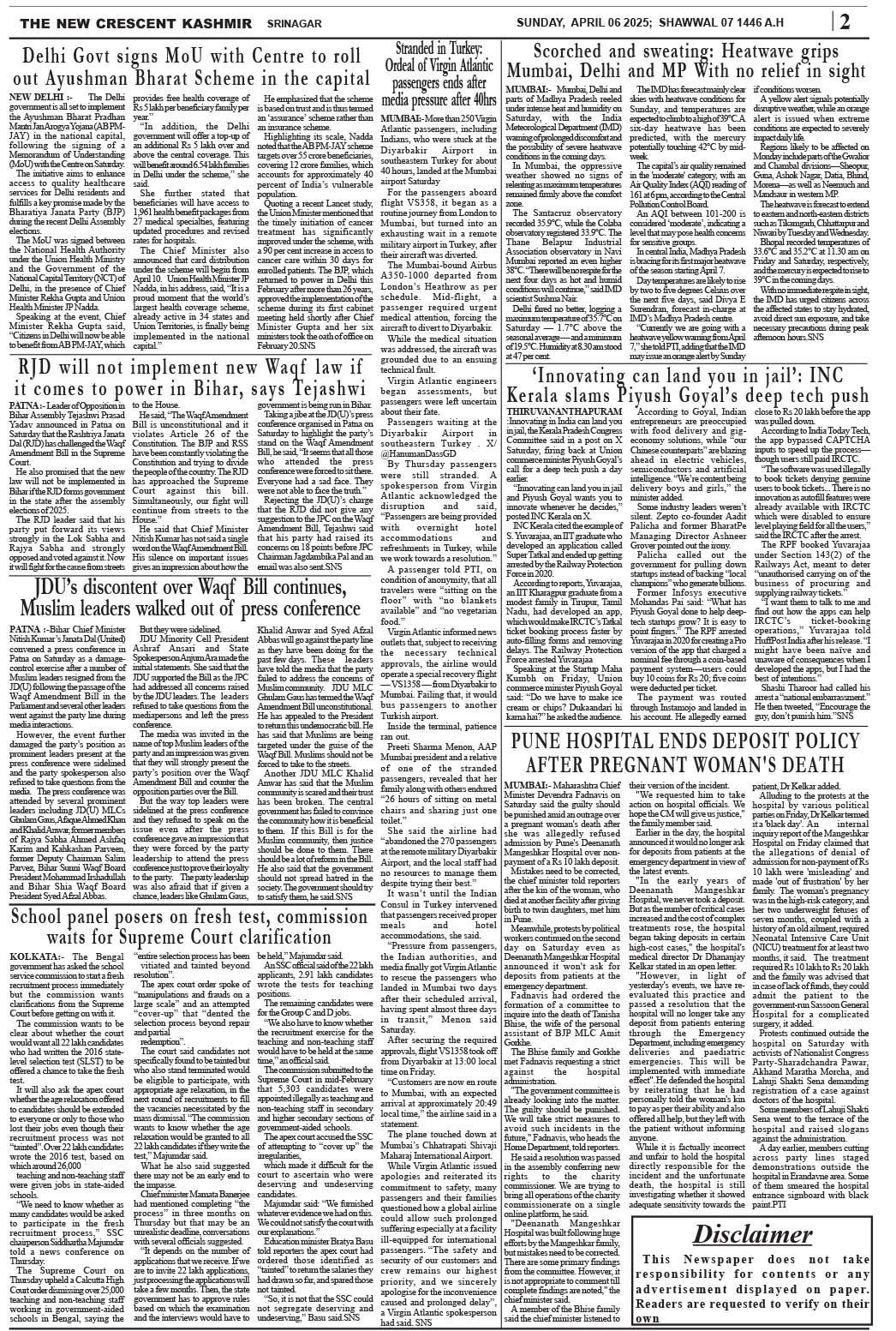 Crescent Kashmir 06-04-2025 Page: 2 April 06, 2025 << First << 2 >> Last >> Page 1Page 2Page 3Page 4Page 5Page 6Page 7Page 8 × Crescent Kashmir 06-04-2025 << First << 2 >> Last >> CK 1CK 2CK 3CK 4CK 5CK 6CK 7CK 8 CK 2