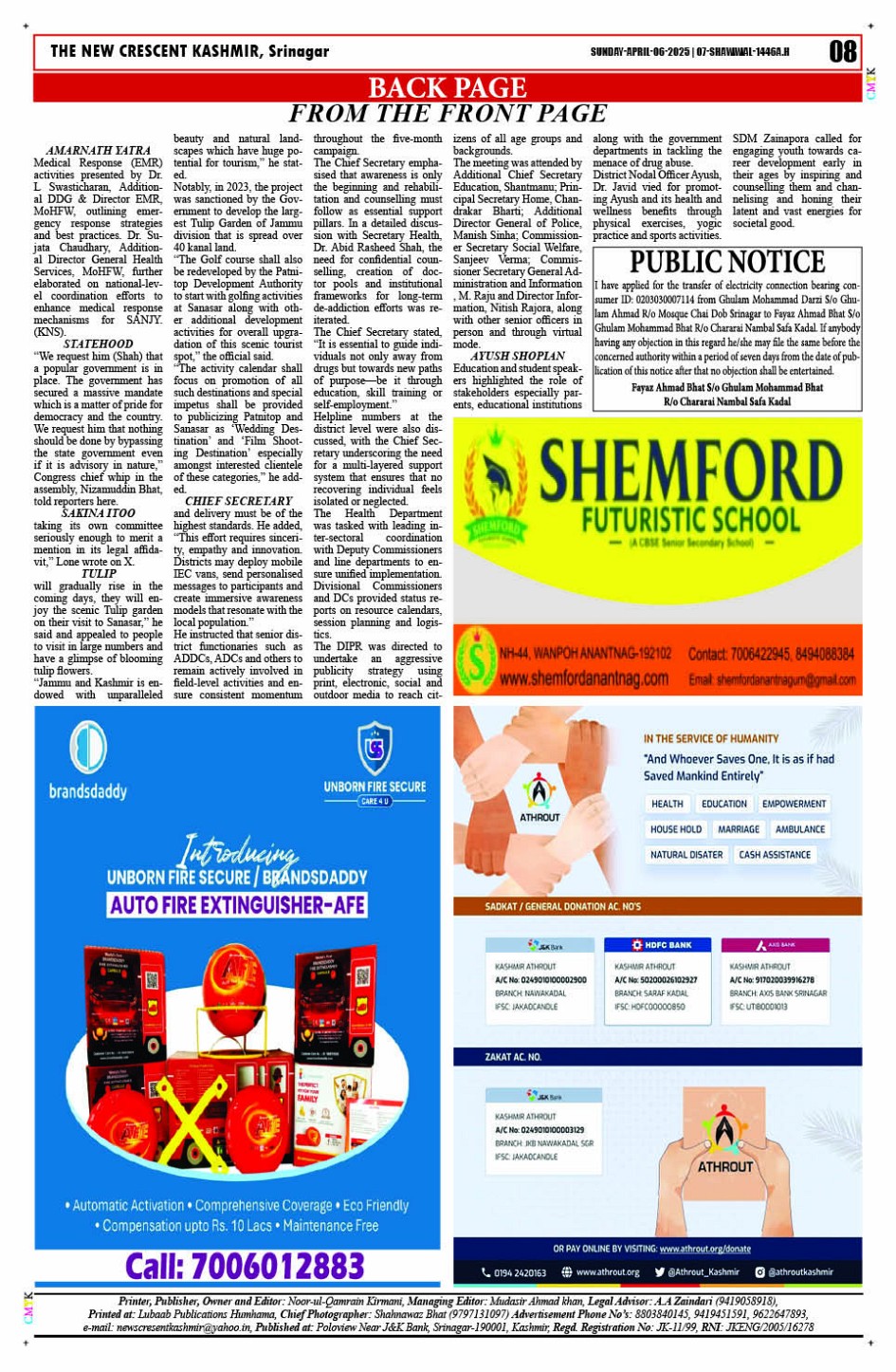 Crescent Kashmir 06-04-2025 Page: 8 April 06, 2025 << First << 8 >> Last >> Page 1Page 2Page 3Page 4Page 5Page 6Page 7Page 8 × Crescent Kashmir 06-04-2025 << First << 8 >> Last >> CK 1CK 2CK 3CK 4CK 5CK 6CK 7CK 8 CK 8