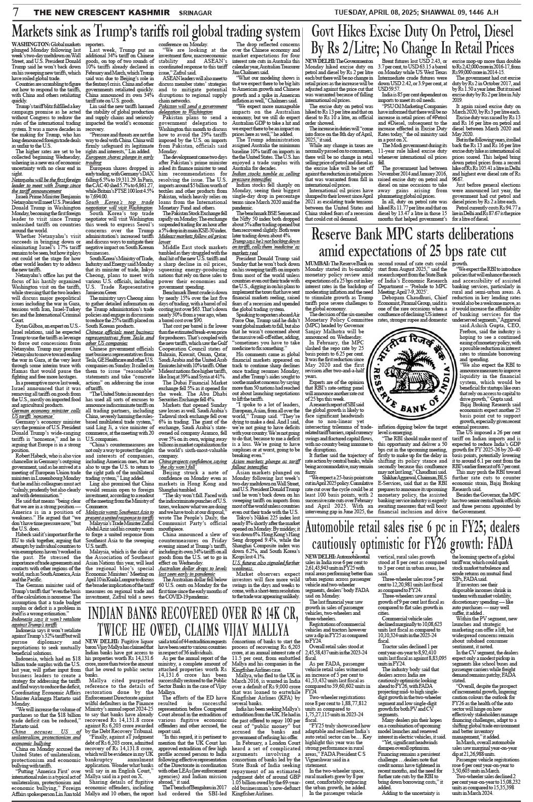 Crescent Kashmir 08-04-2025 Page: 7 April 08, 2025 << First << 7 >> Last >> Page 1Page 2Page 3Page 4Page 5Page 6Page 7Page 8 × Crescent Kashmir 08-04-2025 << First << 7 >> Last >> CK 1CK 2CK 3CK 4CK 5CK 6CK 7CK 8 CK 7