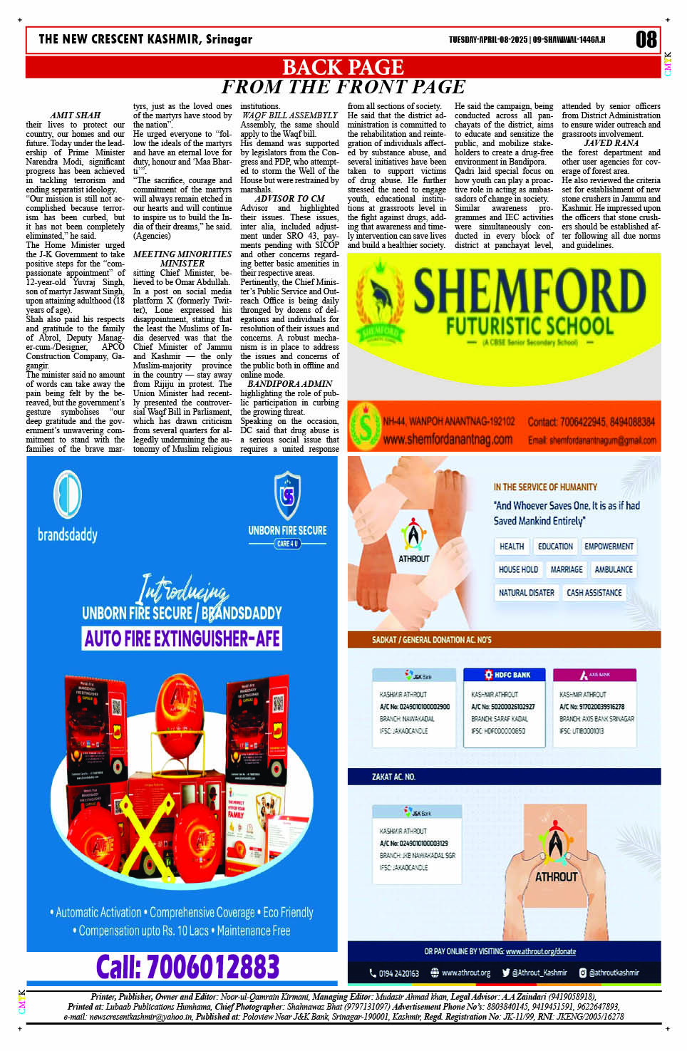 Crescent Kashmir 08-04-2025 Page: 8 April 08, 2025 << First << 8 >> Last >> Page 1Page 2Page 3Page 4Page 5Page 6Page 7Page 8 × Crescent Kashmir 08-04-2025 << First << 8 >> Last >> CK 1CK 2CK 3CK 4CK 5CK 6CK 7CK 8 CK 8