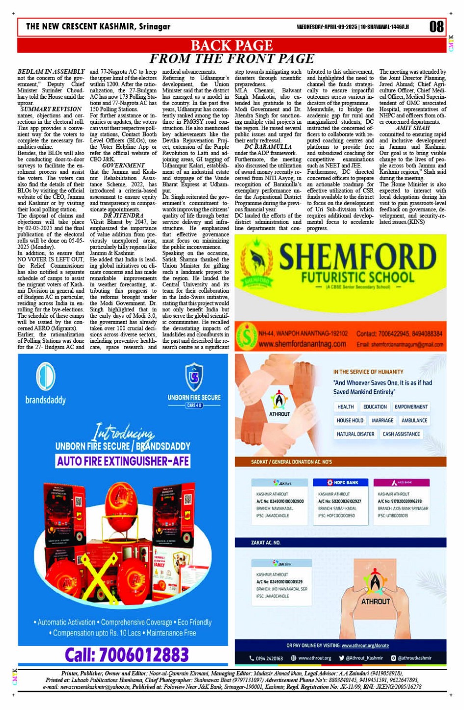 Crescent Kashmir 09-04-2025 Page: 8 April 09, 2025 << First << 8 >> Last >> Page 1Page 2Page 3Page 4Page 5Page 6Page 7Page 8 × Crescent Kashmir 09-04-2025 << First << 8 >> Last >> CK 1CK 2CK 3CK 4CK 5CK 6CK 7CK 8 CK 8