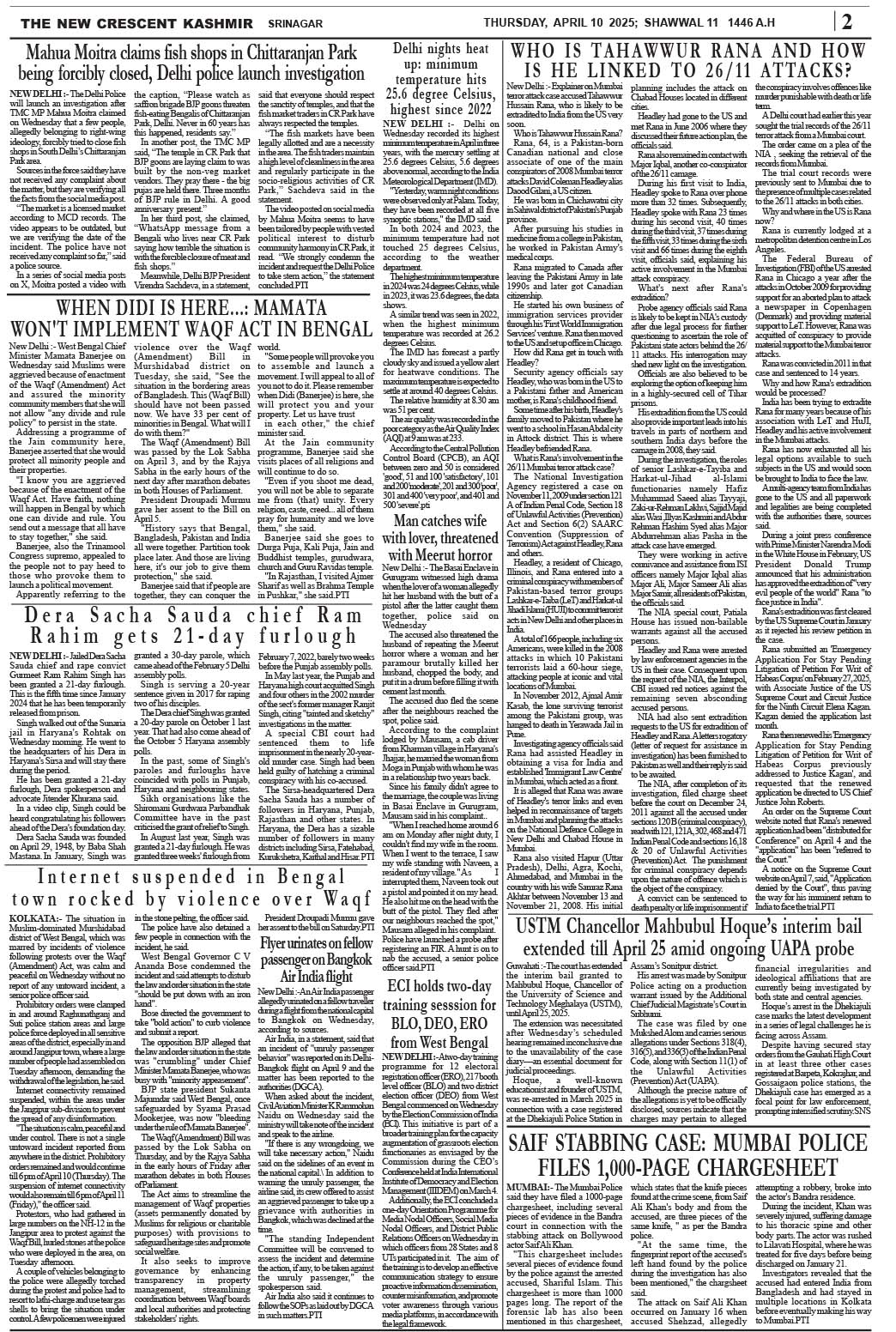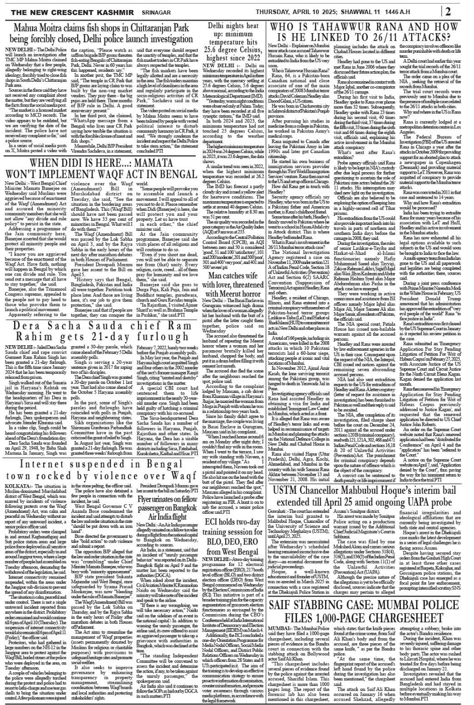 Crescent Kashmir 10-04-2025 Page: 2 April 10, 2025 << First << 2 >> Last >> Page 1Page 2Page 3Page 4Page 5Page 6Page 7Page 8 × Crescent Kashmir 10-04-2025 << First << 2 >> Last >> CK 1CK 2CK 3CK 4CK 5CK 6CK 7CK 8 CK 2