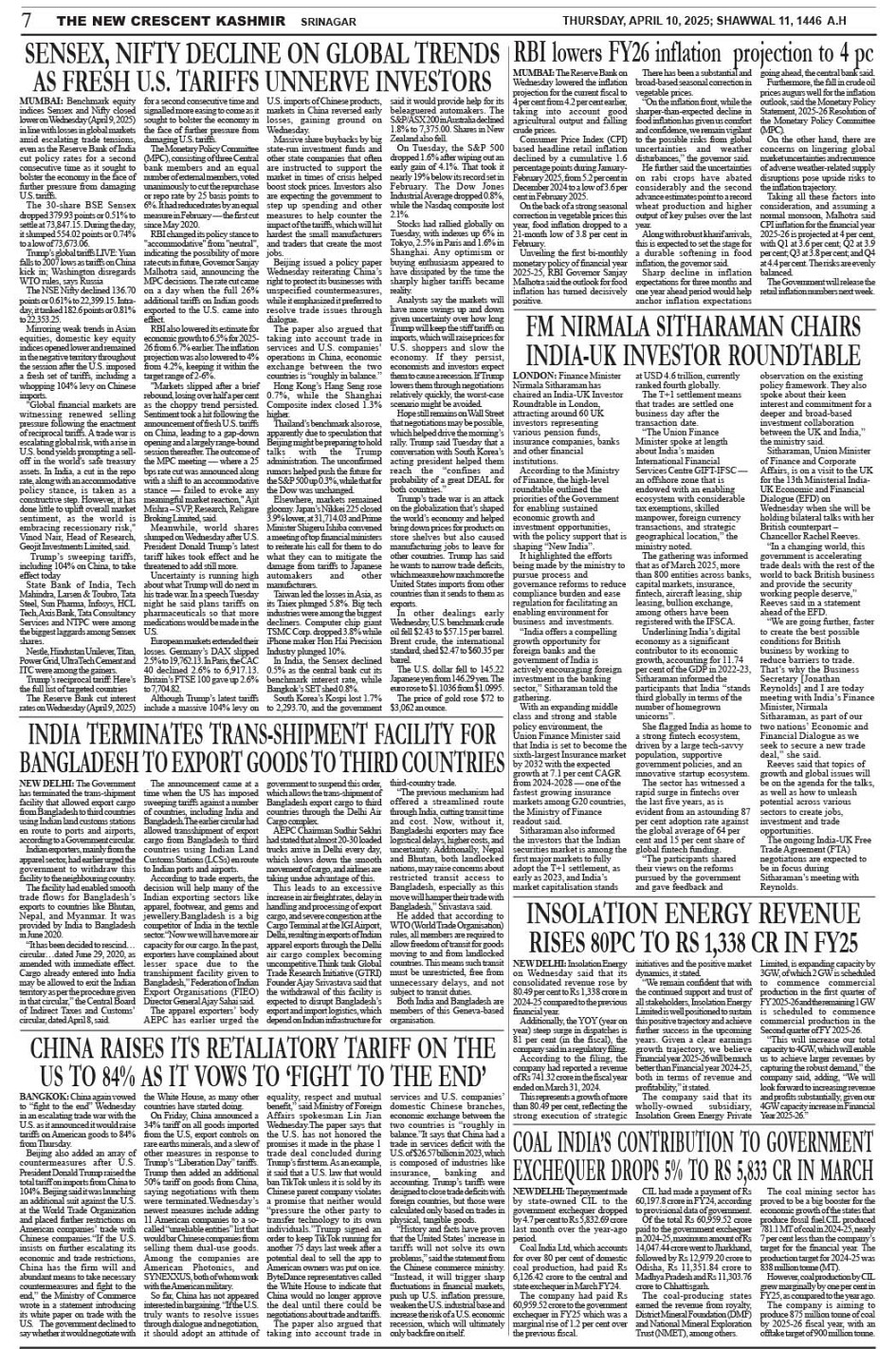 Crescent Kashmir 10-04-2025 Page: 7 April 10, 2025 << First << 7 >> Last >> Page 1Page 2Page 3Page 4Page 5Page 6Page 7Page 8 × Crescent Kashmir 10-04-2025 << First << 7 >> Last >> CK 1CK 2CK 3CK 4CK 5CK 6CK 7CK 8 CK 7