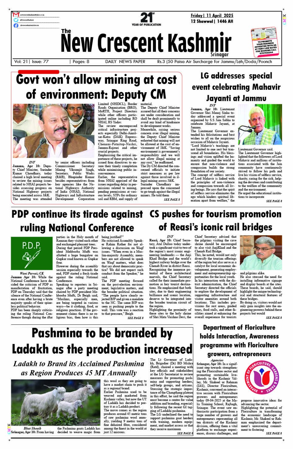 Crescent Kashmir 11-04-2025 April 11, 2025 << First << 1 >> Last >> Page 1Page 2Page 3Page 4Page 5Page 6Page 7Page 8 × Crescent Kashmir 11-04-2025 << First << 1 >> Last >> CK 1CK 2CK 3CK 4CK 5CK 6CK 7CK 8 CK 1