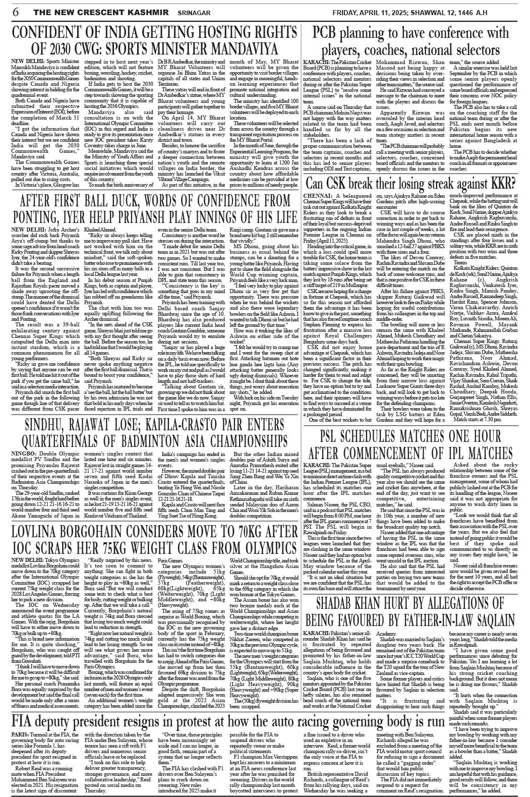 Crescent Kashmir 11-04-2025 Page: 6 April 11, 2025 << First << 6 >> Last >> Page 1Page 2Page 3Page 4Page 5Page 6Page 7Page 8 × Crescent Kashmir 11-04-2025 << First << 6 >> Last >> CK 1CK 2CK 3CK 4CK 5CK 6CK 7CK 8 CK 6