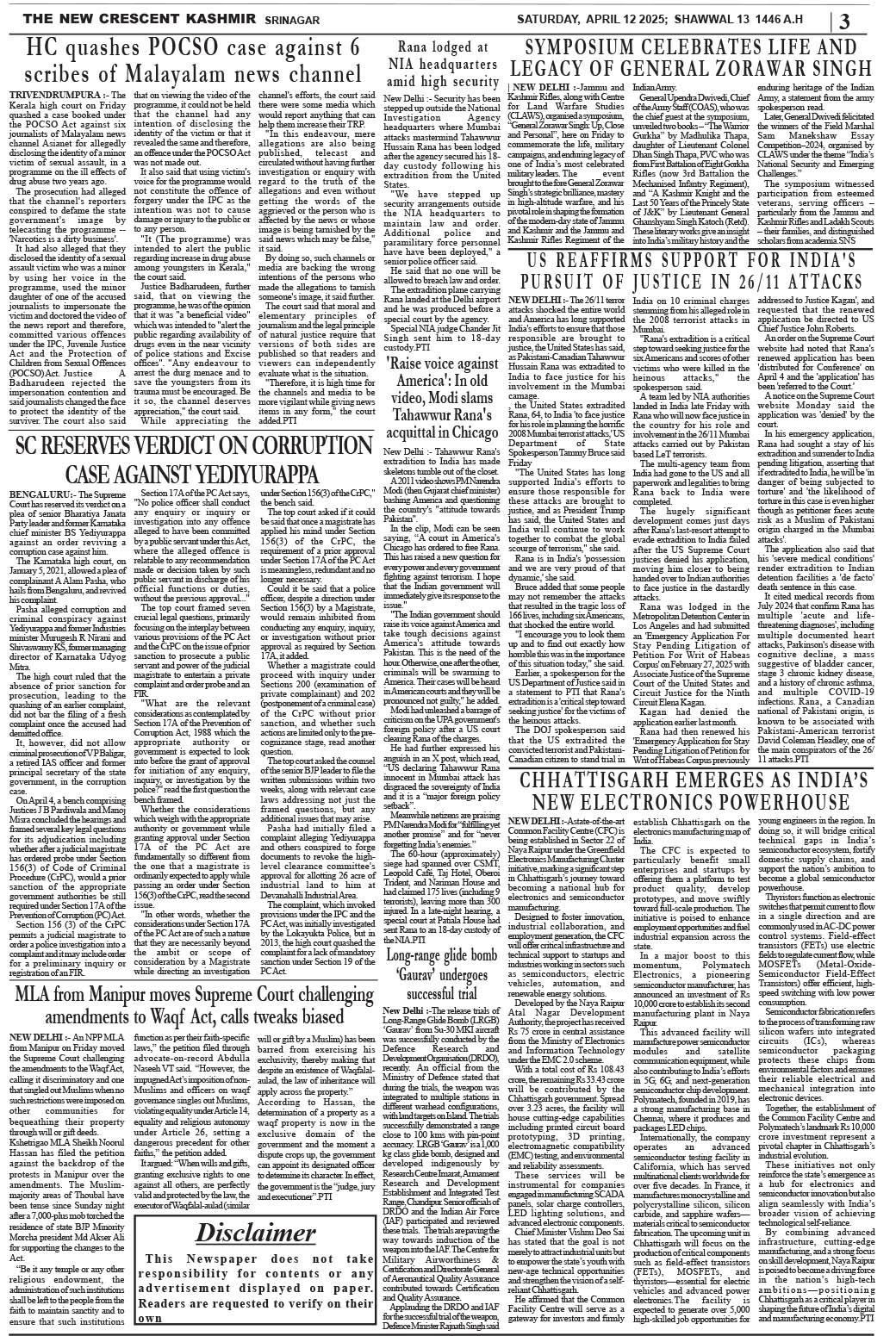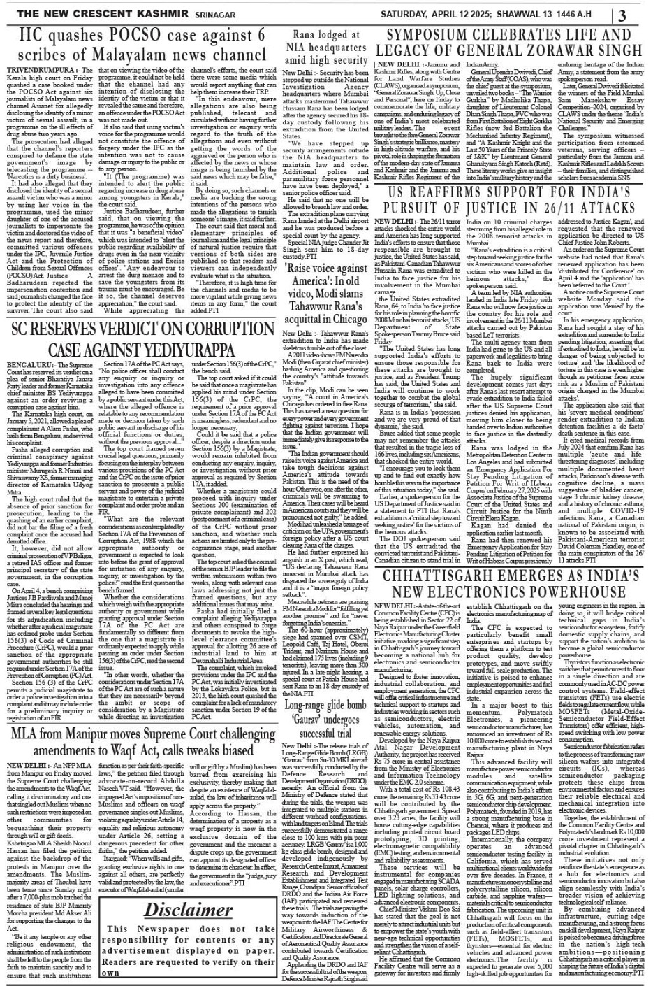 Crescent Kashmir 12-04-2025 Page: 3 April 12, 2025 << First << 3 >> Last >> Page 1Page 2Page 3Page 4Page 5Page 6Page 7Page 8 × Crescent Kashmir 12-04-2025 << First << 3 >> Last >> CK 1CK 2CK 3CK 4CK 5CK 6CK 7CK 8 CK 3