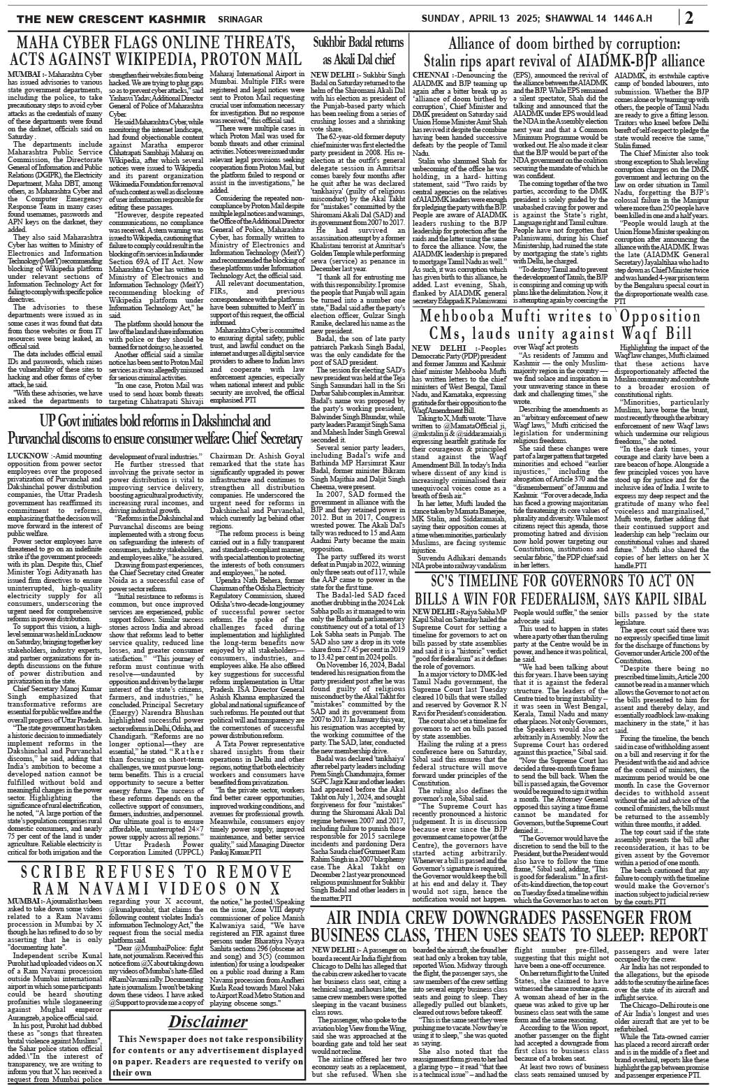 Crescent Kashmir 13-04-2025 Page: 2 April 13, 2025 << First << 2 >> Last >> Page 1Page 2Page 3Page 4Page 5Page 6Page 7Page 8 × Crescent Kashmir 13-04-2025 << First << 2 >> Last >> CK 1CK 2CK 3CK 4CK 5CK 6CK 7CK 8 CK 2