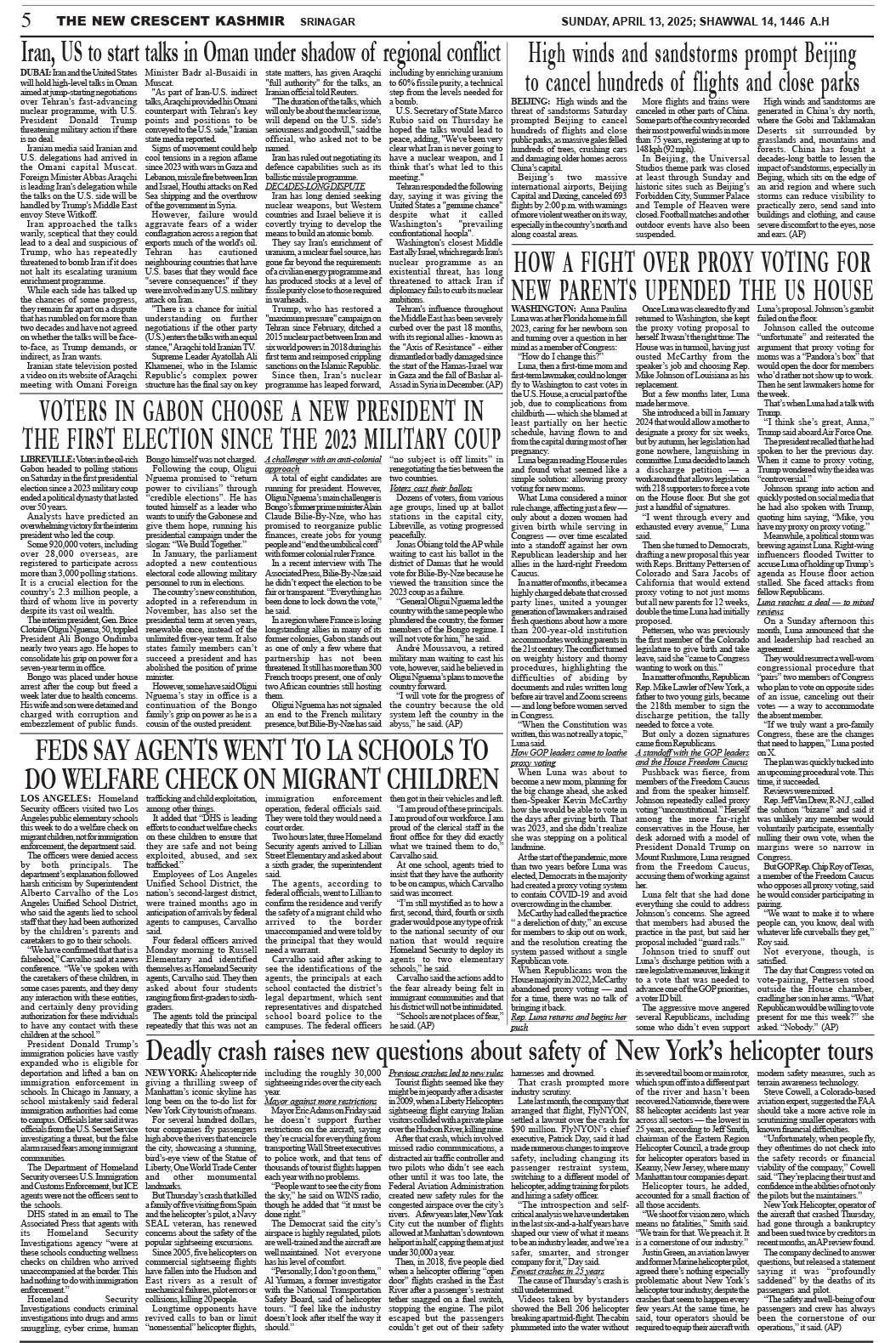 Crescent Kashmir 13-04-2025 Page: 5 April 13, 2025 << First << 5 >> Last >> Page 1Page 2Page 3Page 4Page 5Page 6Page 7Page 8 × Crescent Kashmir 13-04-2025 << First << 5 >> Last >> CK 1CK 2CK 3CK 4CK 5CK 6CK 7CK 8 CK 5