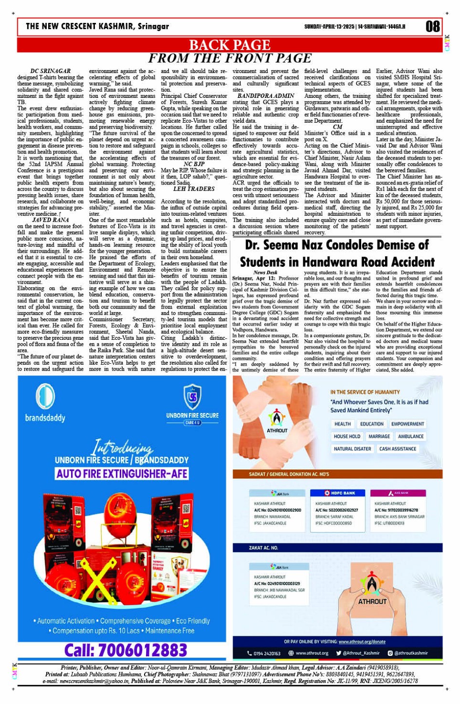 Crescent Kashmir 13-04-2025 Page: 8 April 13, 2025 << First << 8 >> Last >> Page 1Page 2Page 3Page 4Page 5Page 6Page 7Page 8 × Crescent Kashmir 13-04-2025 << First << 8 >> Last >> CK 1CK 2CK 3CK 4CK 5CK 6CK 7CK 8 CK 8