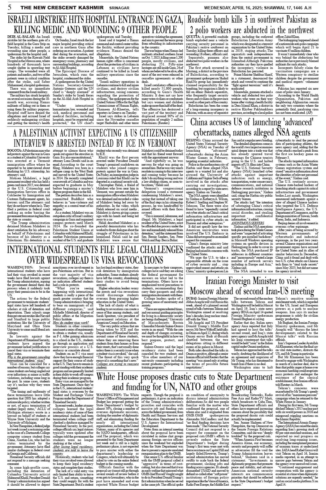 Crescent Kashmir 16-04-2025 Page: 5 April 16, 2025 << First << 5 >> Last >> Page 1Page 2Page 3Page 4Page 5Page 6Page 7Page 8 × Crescent Kashmir 16-04-2025 << First << 5 >> Last >> CK 1CK 2CK 3CK 4CK 5CK 6CK 7CK 8 CK 5