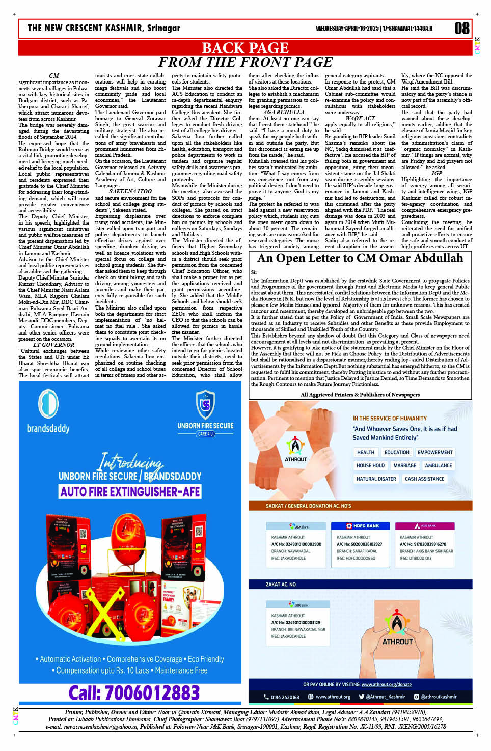 Crescent Kashmir 16-04-2025 Page: 8 April 16, 2025 << First << 8 >> Last >> Page 1Page 2Page 3Page 4Page 5Page 6Page 7Page 8 × Crescent Kashmir 16-04-2025 << First << 8 >> Last >> CK 1CK 2CK 3CK 4CK 5CK 6CK 7CK 8 CK 8