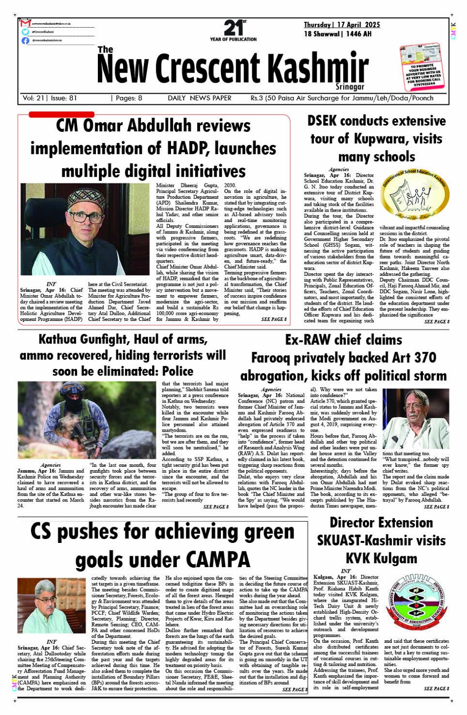 Crescent Kashmir 17-04-2025 April 17, 2025 << First << 1 >> Last >> Page 1Page 2Page 3Page 4Page 5Page 6Page 7Page 8 × Crescent Kashmir 17-04-2025 << First << 1 >> Last >> CK 1CK 2CK 3CK 4CK 5CK 6CK 7CK 8 CK 1