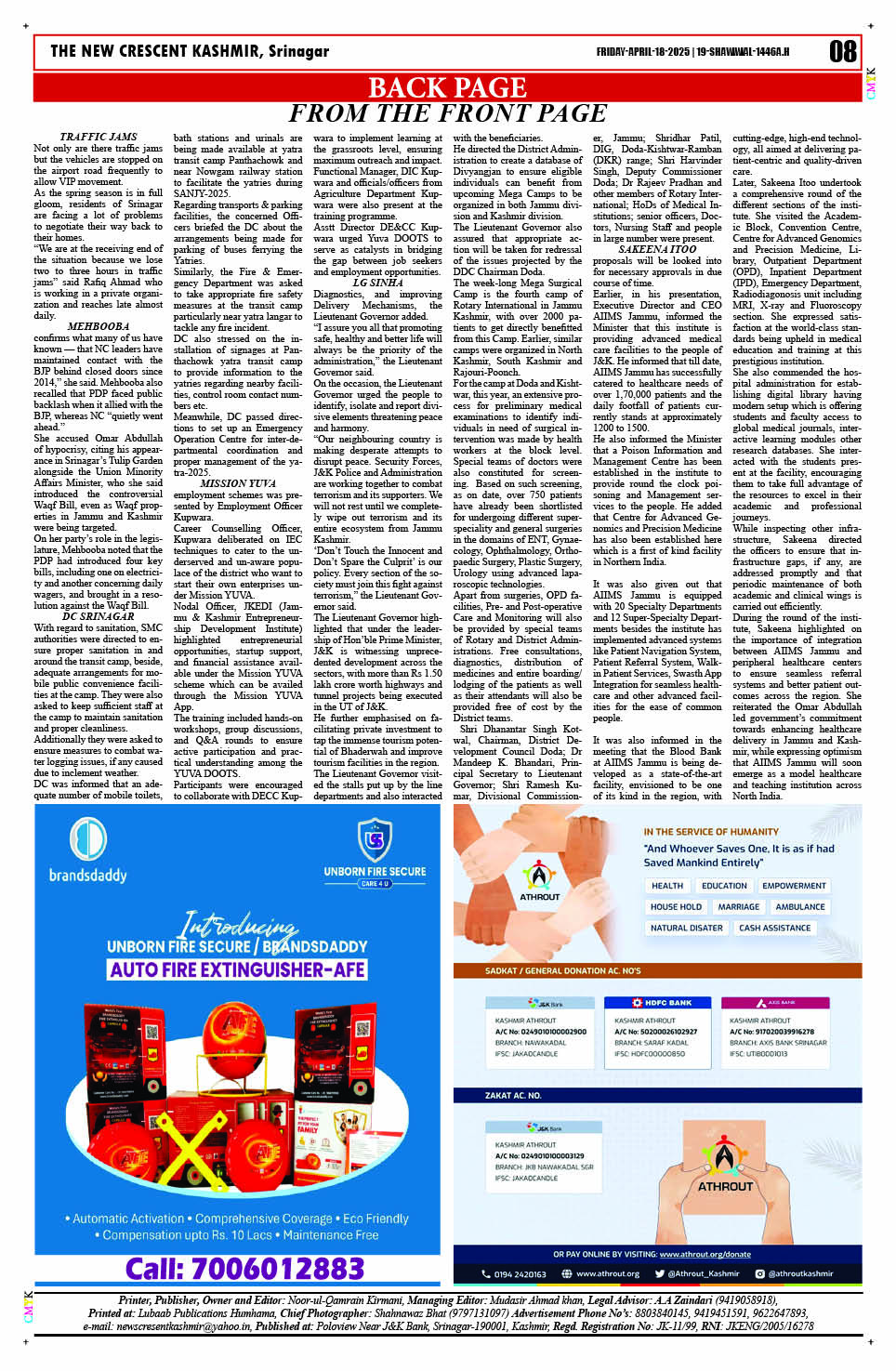Crescent Kashmir 18-04-2025 Page: 8 April 18, 2025 << First << 8 >> Last >> Page 1Page 2Page 3Page 4Page 5Page 6Page 7Page 8 × Crescent Kashmir 18-04-2025 << First << 8 >> Last >> CK 1CK 2CK 3CK 4CK 5CK 6CK 7CK 8 CK 8