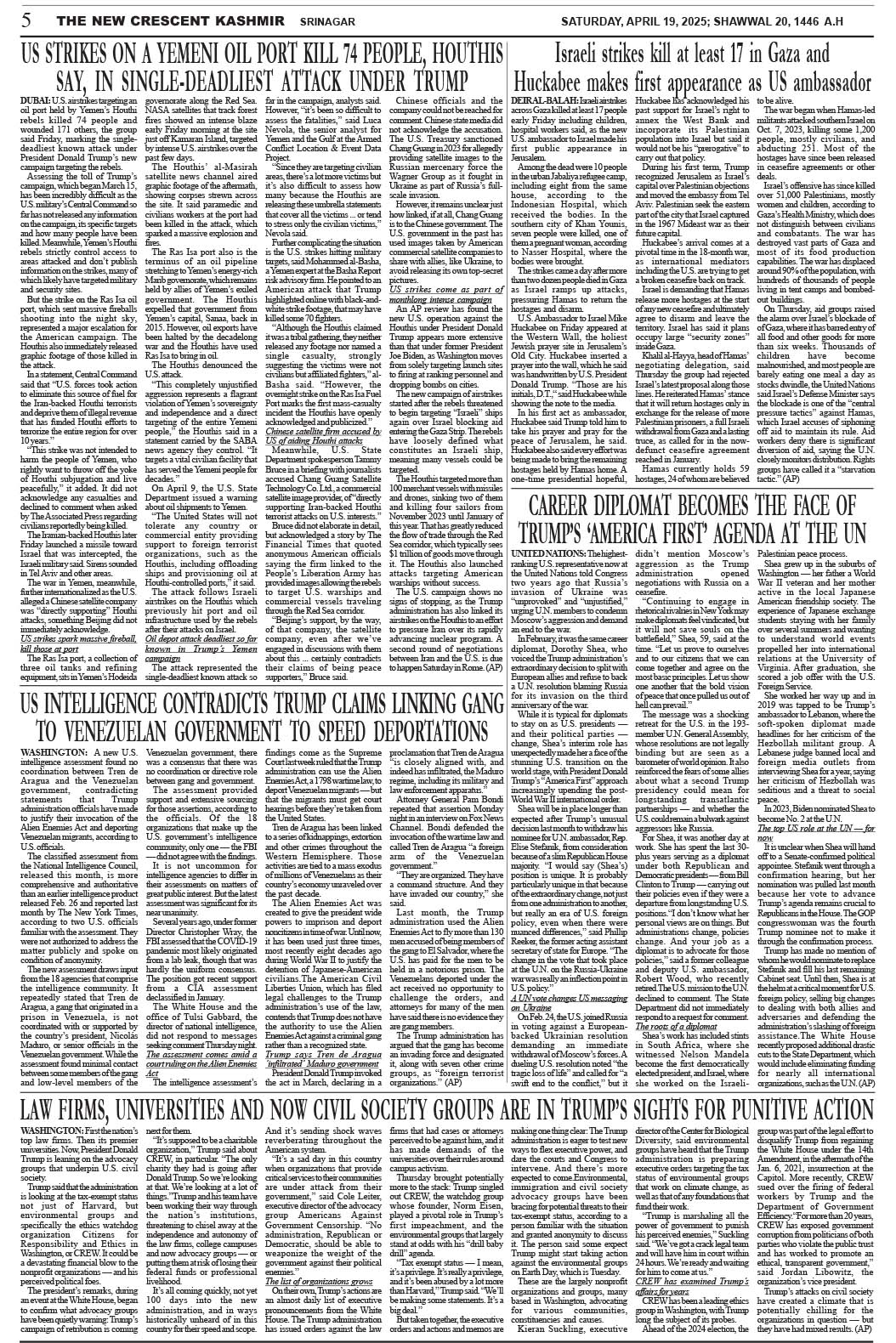 Crescent Kashmir 19-04-2025 Page: 5 April 19, 2025 << First << 5 >> Last >> Page 1Page 2Page 3Page 4Page 5Page 6Page 7Page 8 × Crescent Kashmir 19-04-2025 << First << 5 >> Last >> CK 1CK 2CK 3CK 4CK 5CK 6CK 7CK 8 CK 5