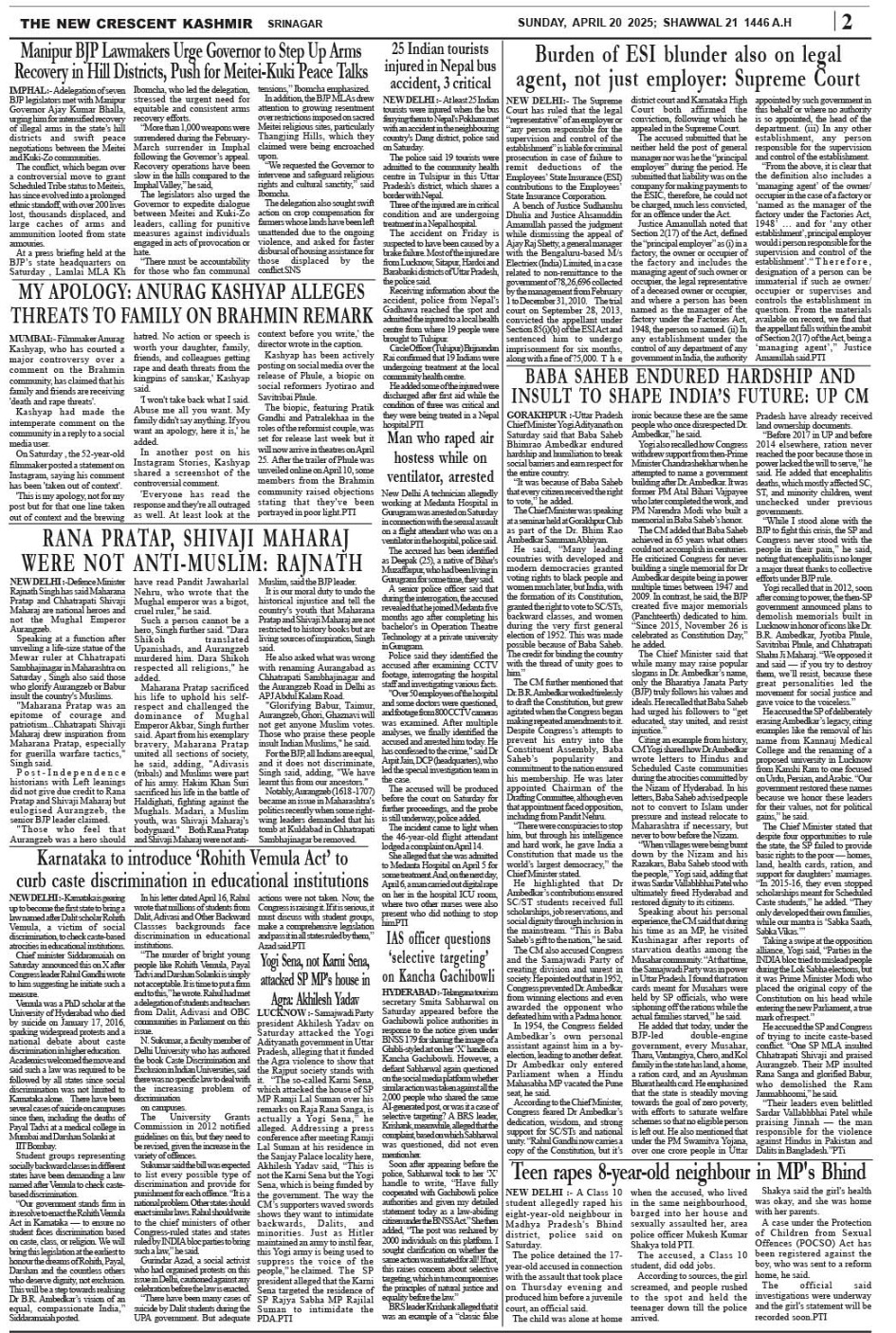 Crescent Kashmir 20-04-2025 Page: 2 April 20, 2025 << First << 2 >> Last >> Page 1Page 2Page 3Page 4Page 5Page 6Page 7Page 8 × Crescent Kashmir 20-04-2025 << First << 2 >> Last >> CK 1CK 2CK 3CK 4CK 5CK 6CK 7CK 8 CK 2