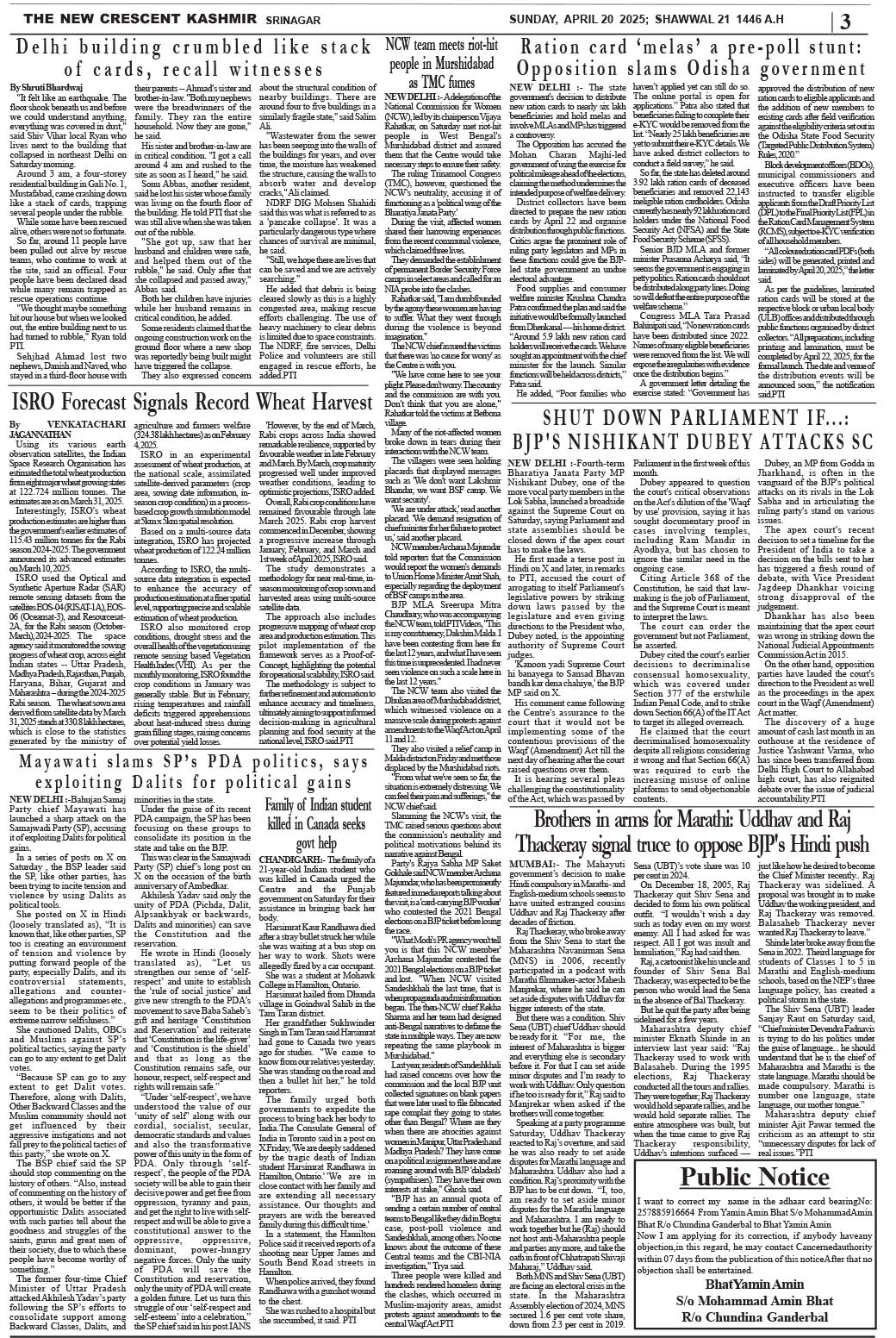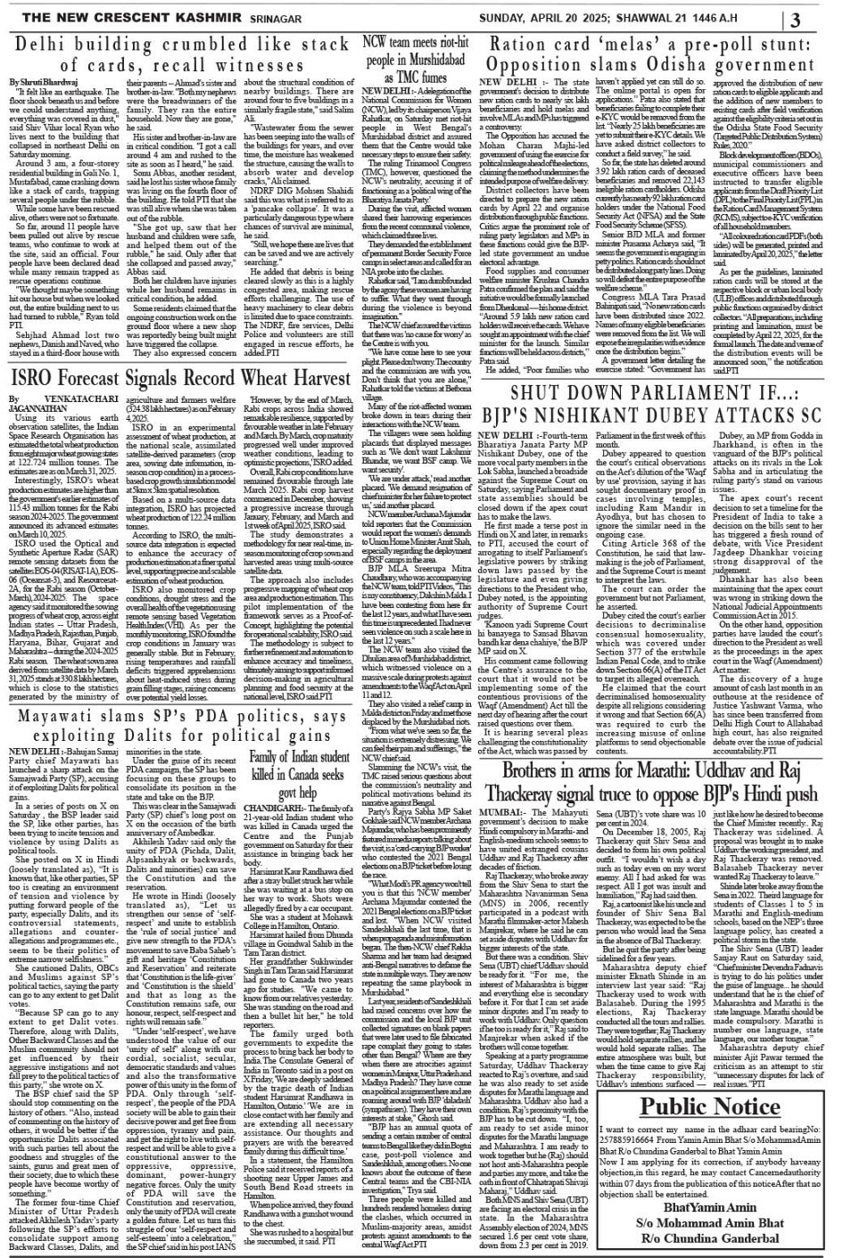 Crescent Kashmir 20-04-2025 Page: 3 April 20, 2025 << First << 3 >> Last >> Page 1Page 2Page 3Page 4Page 5Page 6Page 7Page 8 × Crescent Kashmir 20-04-2025 << First << 3 >> Last >> CK 1CK 2CK 3CK 4CK 5CK 6CK 7CK 8 CK 3