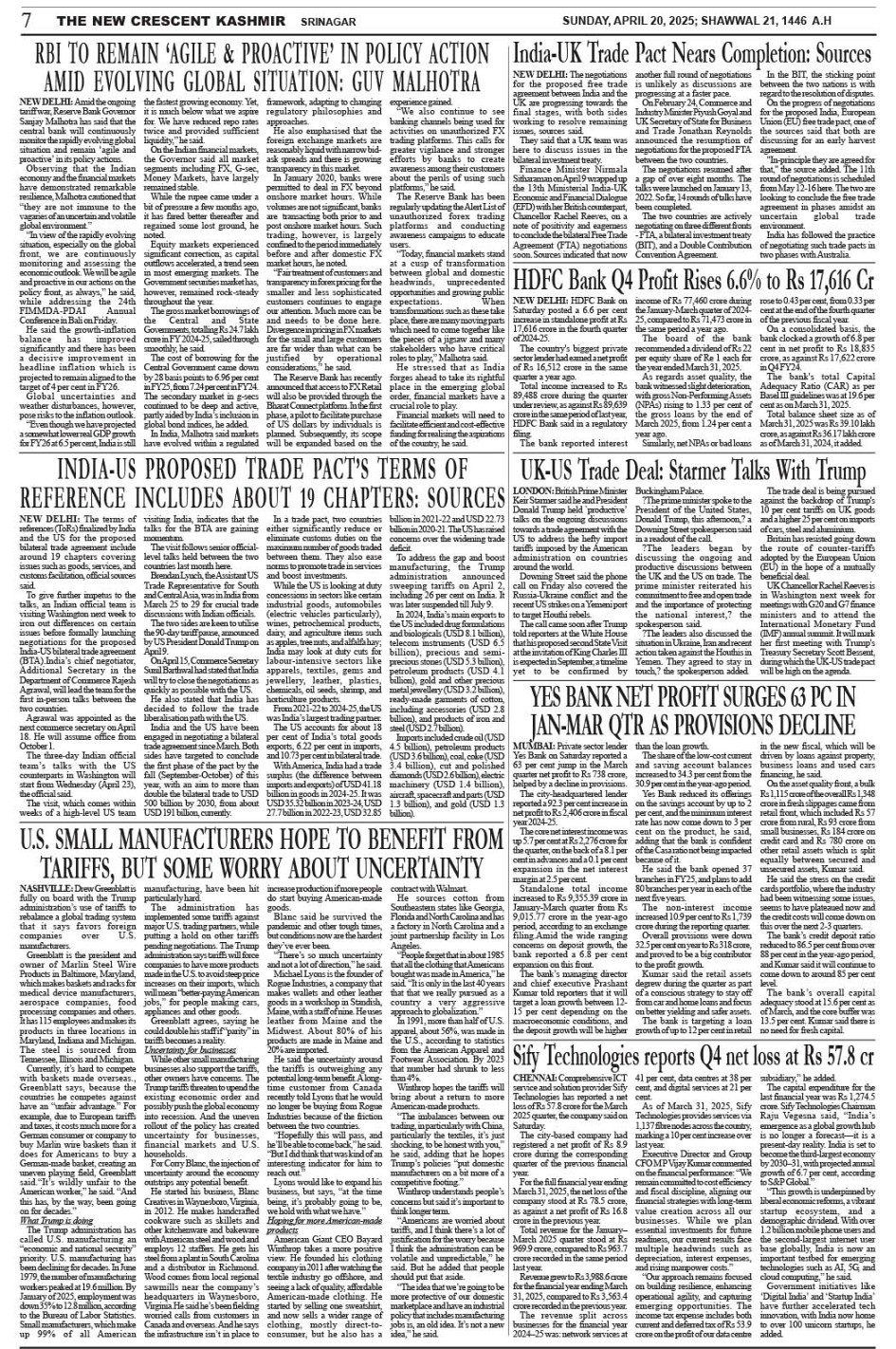 Crescent Kashmir 20-04-2025 Page: 7 April 20, 2025 << First << 7 >> Last >> Page 1Page 2Page 3Page 4Page 5Page 6Page 7Page 8 × Crescent Kashmir 20-04-2025 << First << 7 >> Last >> CK 1CK 2CK 3CK 4CK 5CK 6CK 7CK 8 CK 7