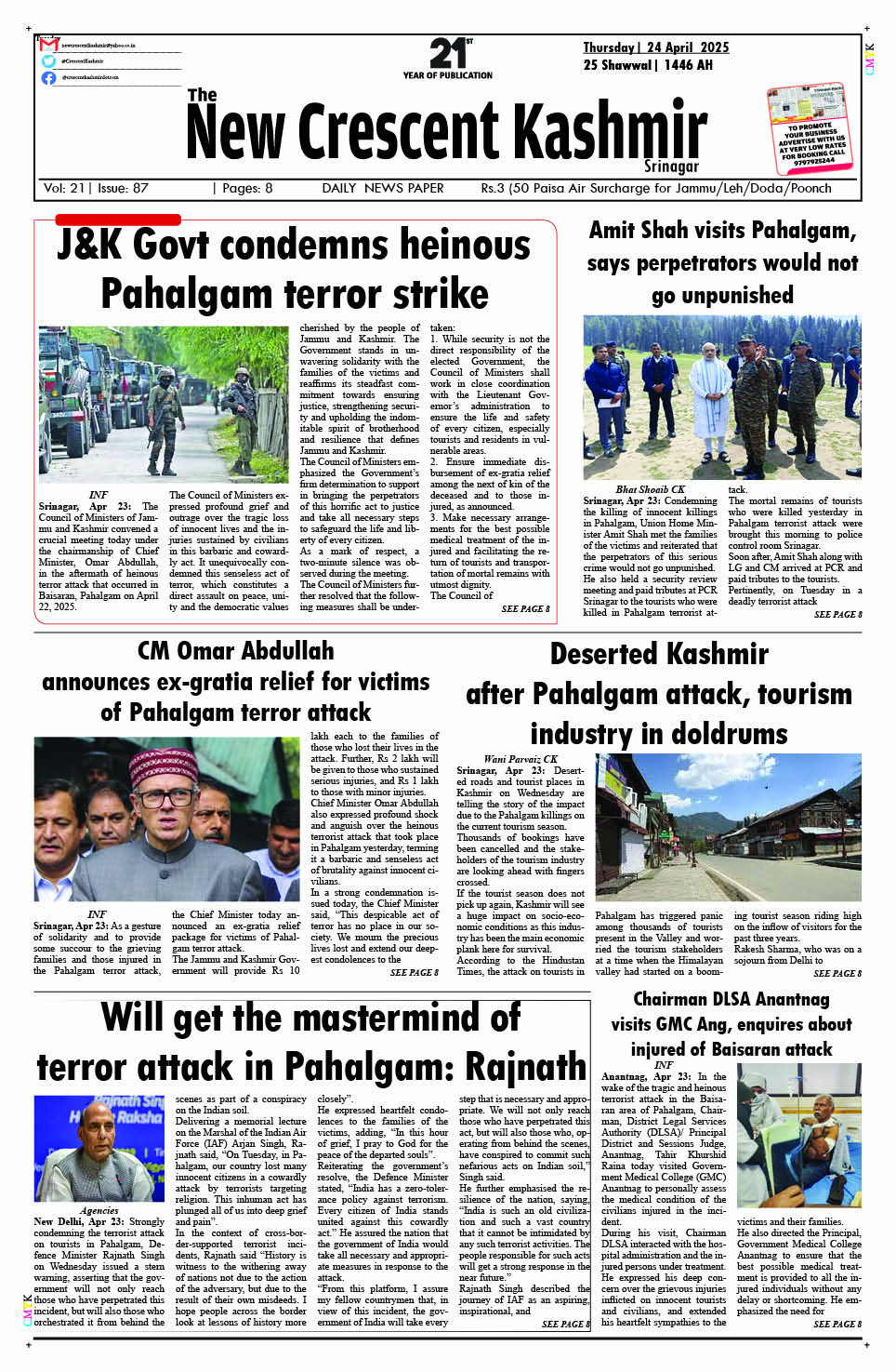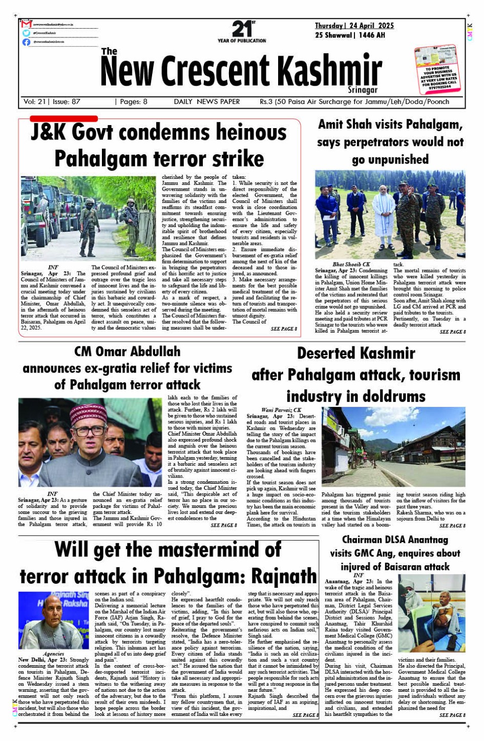 Crescent Kashmir 24-04-2025 April 24, 2025 << First << 1 >> Last >> Page 1Page 2Page 3Page 4Page 5Page 6Page 7Page 8 × Crescent Kashmir 24-04-2025 << First << 1 >> Last >> CK 1CK 2CK 3CK 4CK 5CK 6CK 7CK 8 CK 1