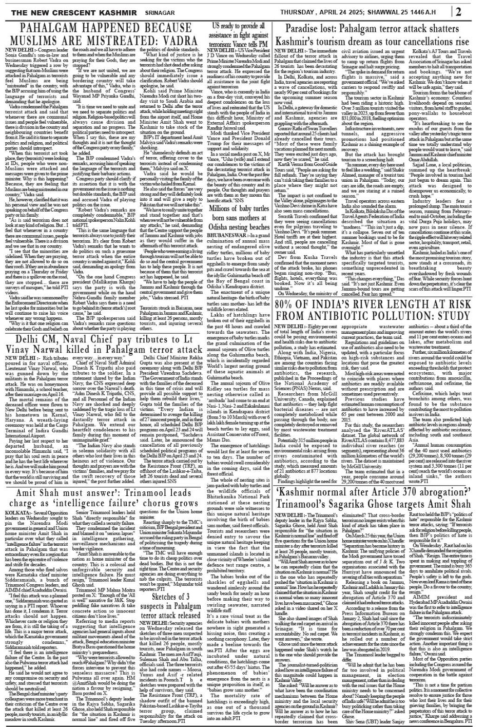 Crescent Kashmir 24-04-2025 Page: 2 April 24, 2025 << First << 2 >> Last >> Page 1Page 2Page 3Page 4Page 5Page 6Page 7Page 8 × Crescent Kashmir 24-04-2025 << First << 2 >> Last >> CK 1CK 2CK 3CK 4CK 5CK 6CK 7CK 8 CK 2