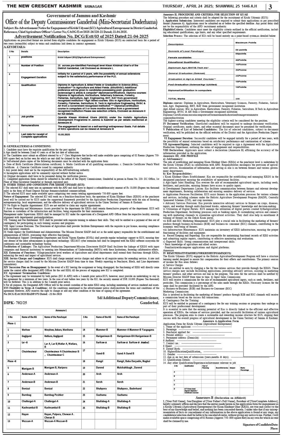 Crescent Kashmir 24-04-2025 Page: 3 April 24, 2025 << First << 3 >> Last >> Page 1Page 2Page 3Page 4Page 5Page 6Page 7Page 8 × Crescent Kashmir 24-04-2025 << First << 3 >> Last >> CK 1CK 2CK 3CK 4CK 5CK 6CK 7CK 8 CK 3