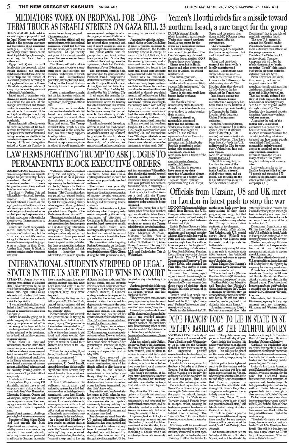 Crescent Kashmir 24-04-2025 Page: 5 April 24, 2025 << First << 5 >> Last >> Page 1Page 2Page 3Page 4Page 5Page 6Page 7Page 8 × Crescent Kashmir 24-04-2025 << First << 5 >> Last >> CK 1CK 2CK 3CK 4CK 5CK 6CK 7CK 8 CK 5