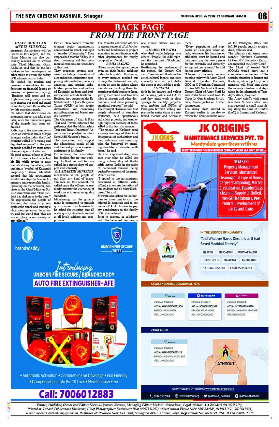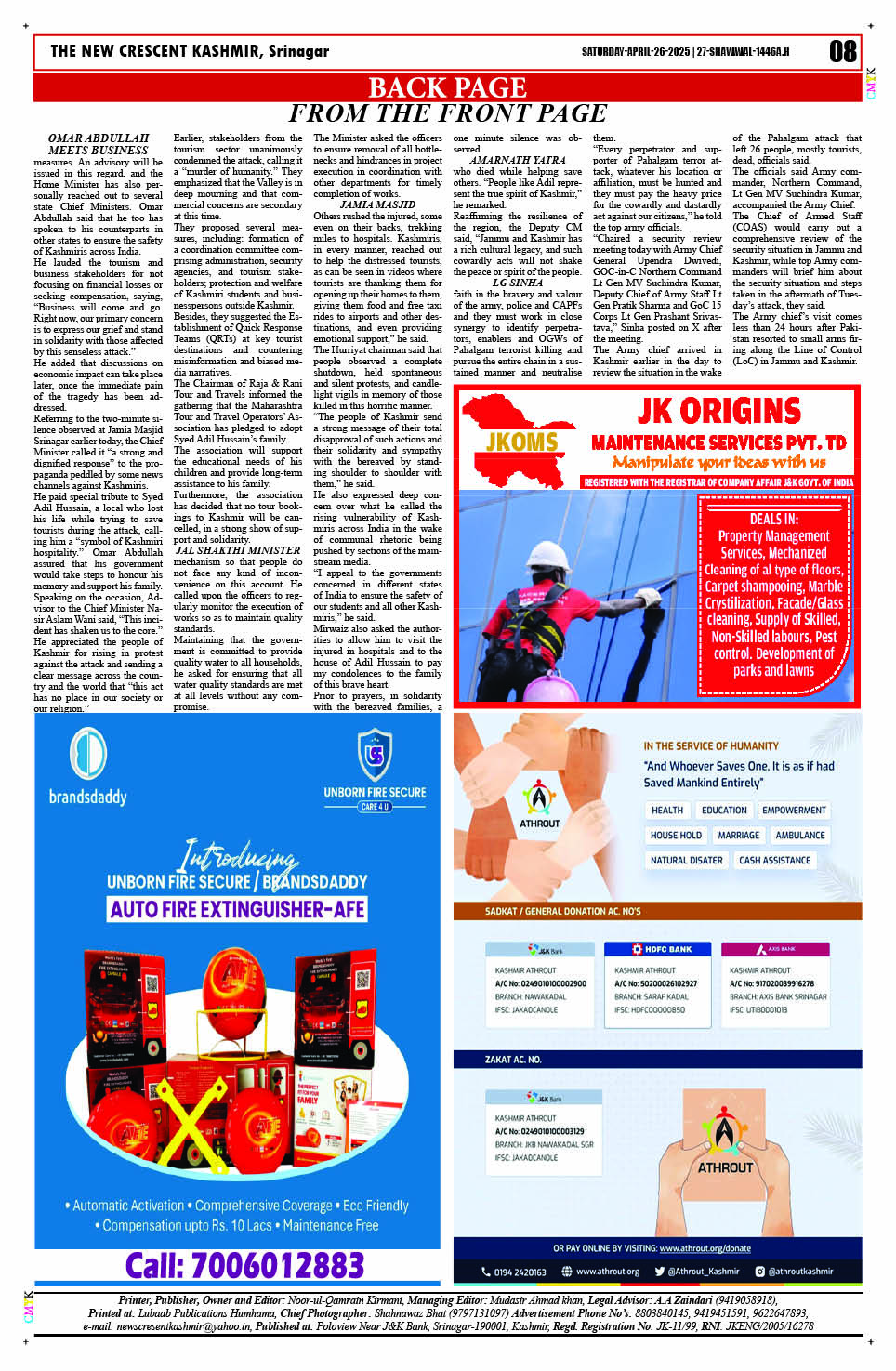 Crescent Kashmir 26-04-2025 Page: 8 April 26, 2025 << First << 8 >> Last >> Page 1Page 2Page 3Page 4Page 5Page 6Page 7Page 8 × Crescent Kashmir 26-04-2025 << First << 8 >> Last >> CK 1CK 2CK 3CK 4CK 5CK 6CK 7CK 8 CK 8