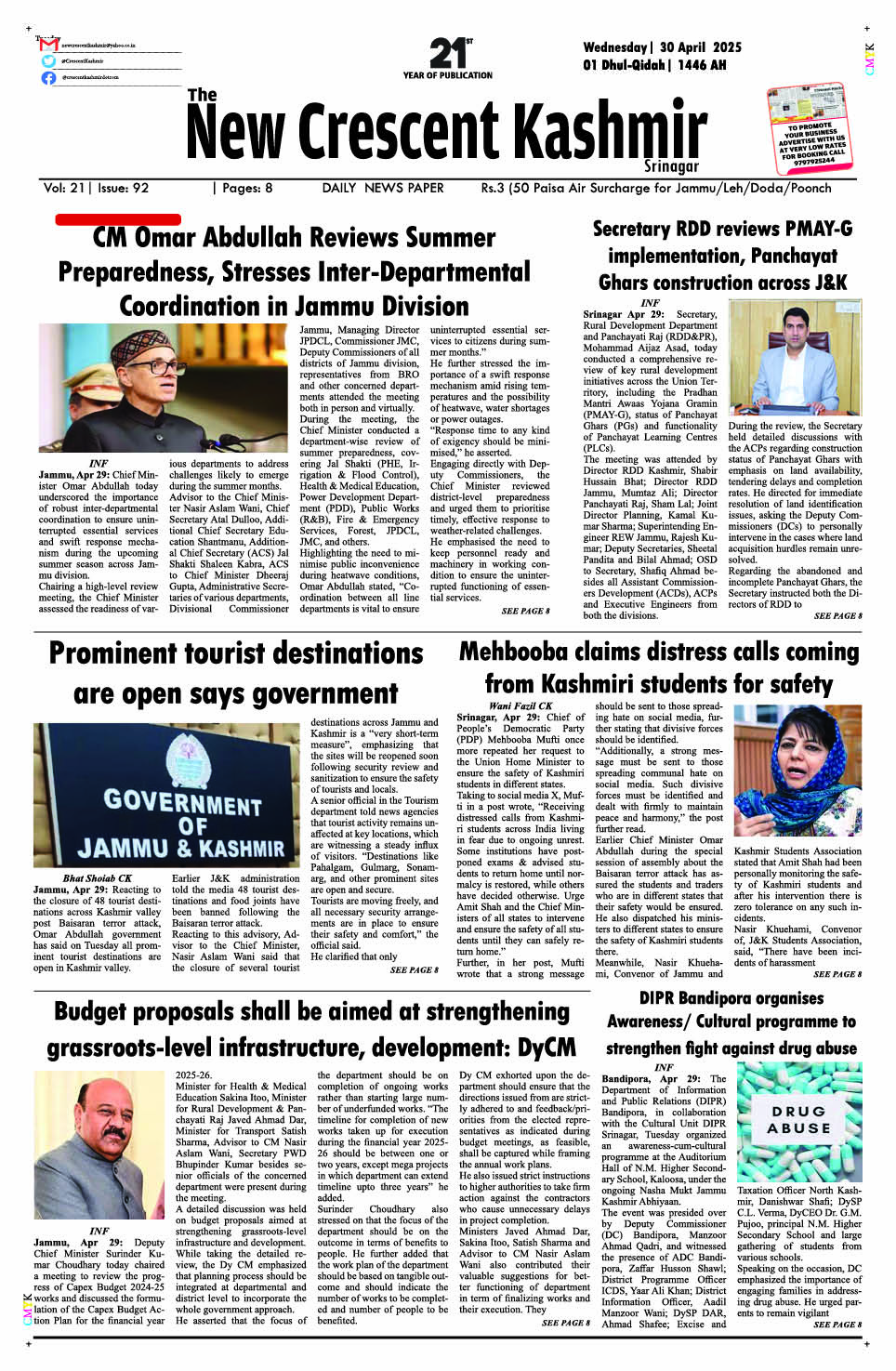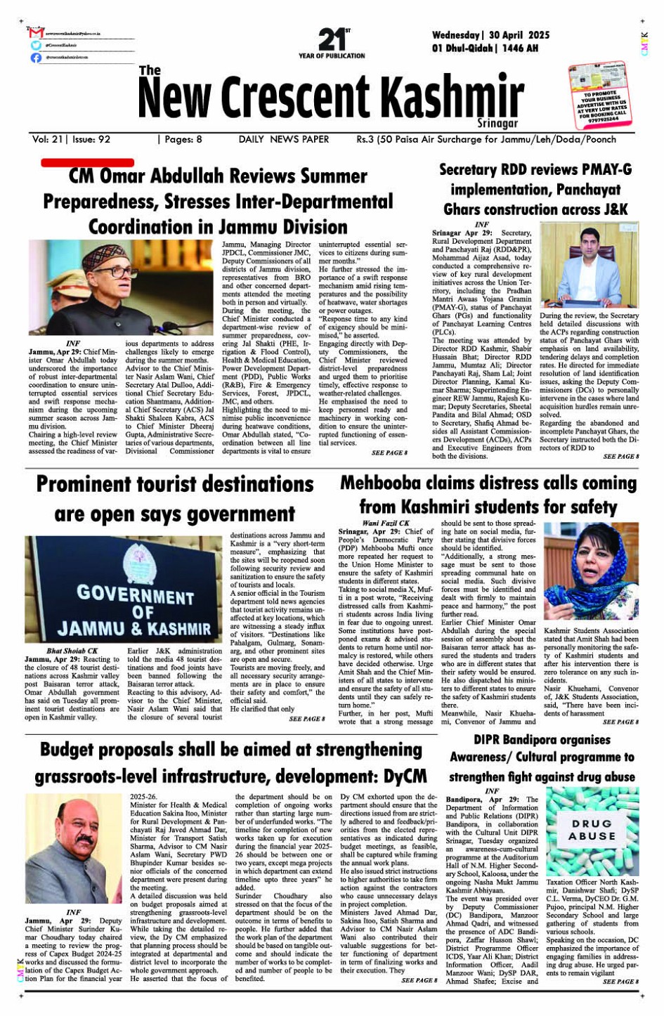 Crescent Kashmir 30-04-2025 April 30, 2025 << First << 1 >> Last >> Page 1Page 2Page 3Page 4Page 5Page 6Page 7Page 8 × Crescent Kashmir 30-04-2025 << First << 1 >> Last >> CK 1CK 2CK 3CK 4CK 5CK 6CK 7CK 8 CK 1