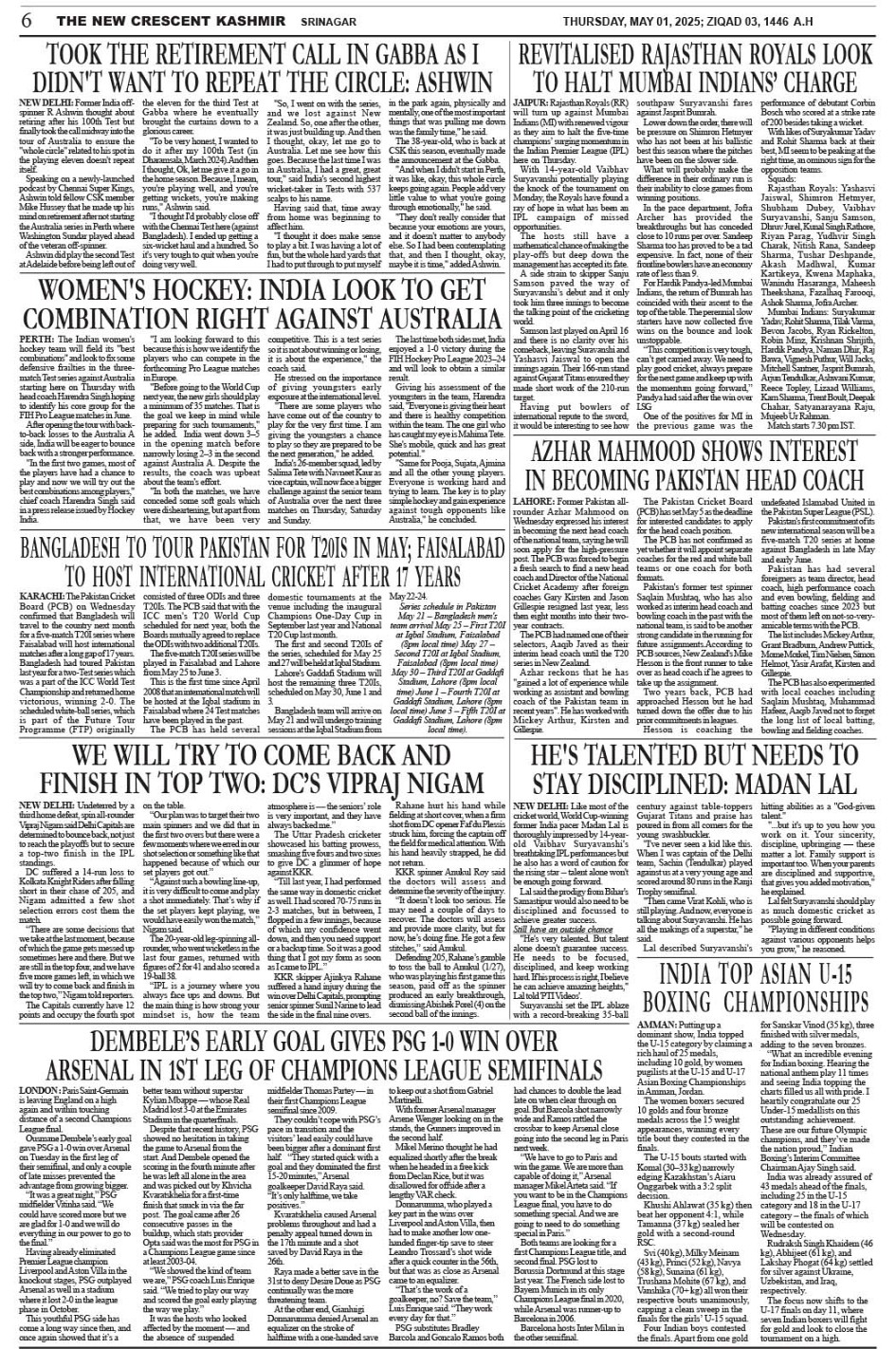 Crescent Kashmir 01-05-2025 Page: 6 May 01, 2025 << First << 6 >> Last >> Page 1Page 2Page 3Page 4Page 5Page 6Page 7Page 8 × Crescent Kashmir 01-05-2025 << First << 6 >> Last >> CK 1CK 2CK 3CK 4CK 5CK 6CK 7CK 8 CK 6