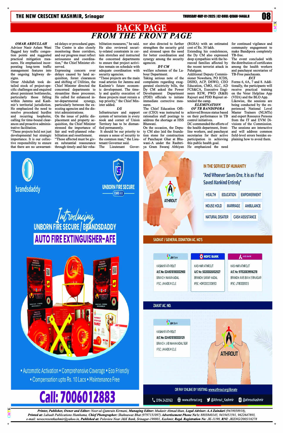 Crescent Kashmir 01-05-2025 Page: 8 May 01, 2025 << First << 8 >> Last >> Page 1Page 2Page 3Page 4Page 5Page 6Page 7Page 8 × Crescent Kashmir 01-05-2025 << First << 8 >> Last >> CK 1CK 2CK 3CK 4CK 5CK 6CK 7CK 8 CK 8